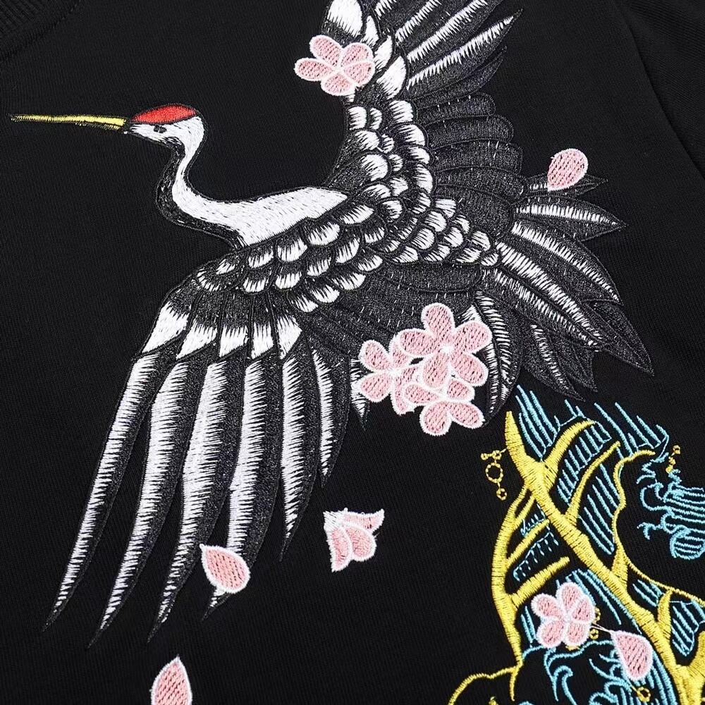 【之】★パーカー★ブラック 刺繍 鶴柄 合わせやすい
