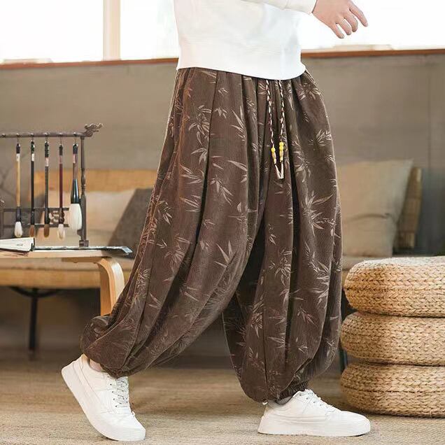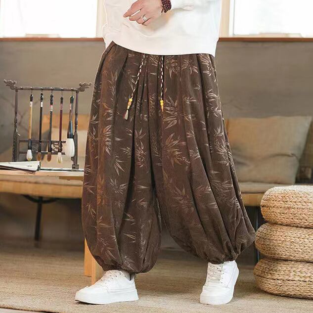 ✪人気新作✪【之】★ズボン★ブラック コーヒー色 メンズ テーパードパンツ 竹柄 ビロード | 之