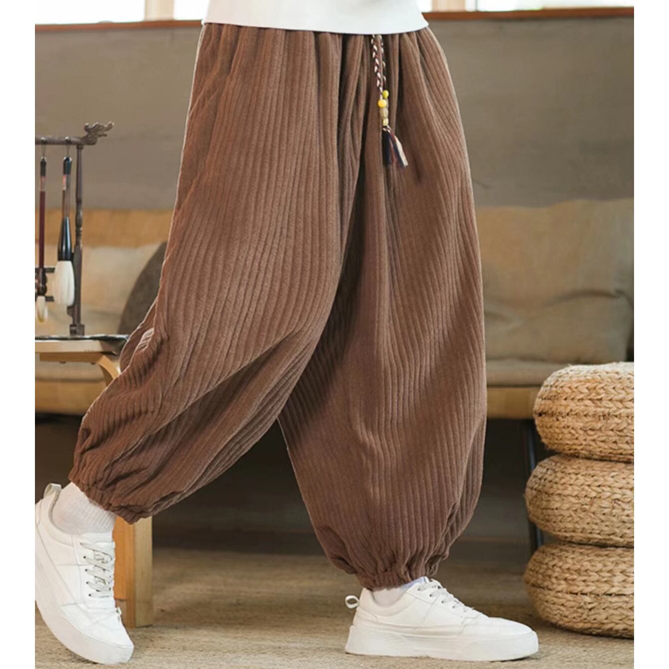 ✪人気新作✪【之】★ズボン★ブラック コーヒー色 メンズ テーパードパンツ ビロード | 之