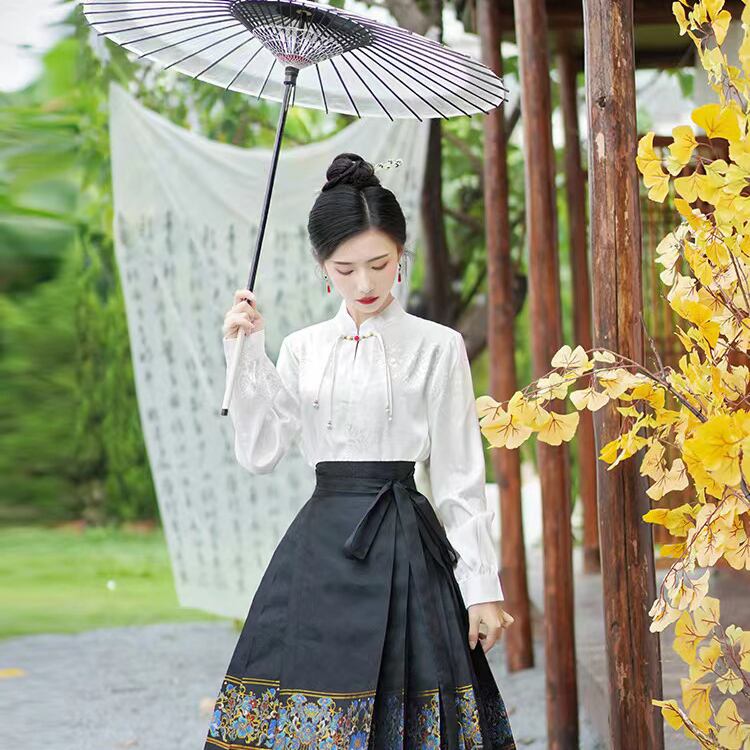 【之】★シャツ★ホワイト 結び目ボタン 綴り合せ チャイナ風