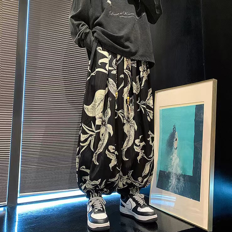 【之】★ワイドパンツ★ブラック カジュアル 花柄 | 之