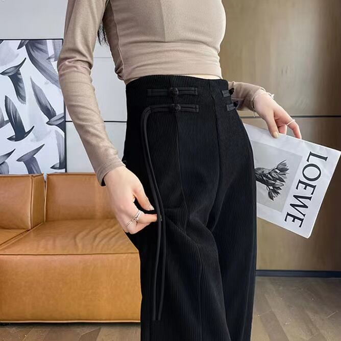 【之】★ズボン★ブラック ズボン vintage 合わせやすい チャイナ風 結び目ボタン