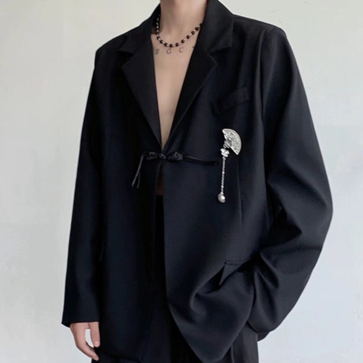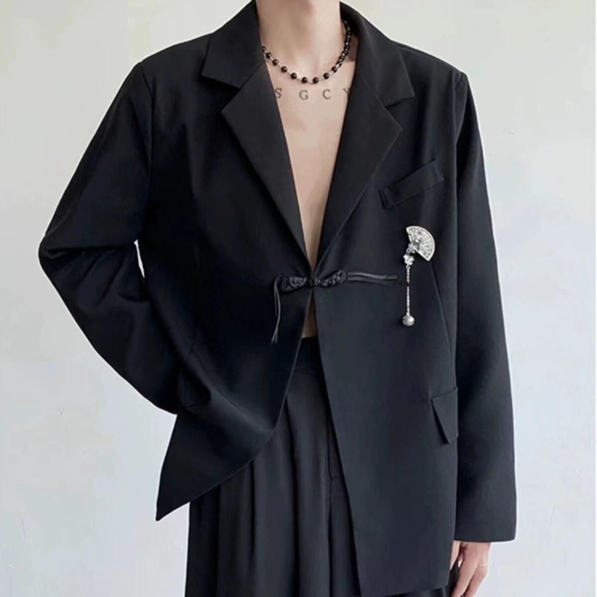 【之】★コート★ブラック チャイナ風 結び目ボタン パンク風 清心寡欲類