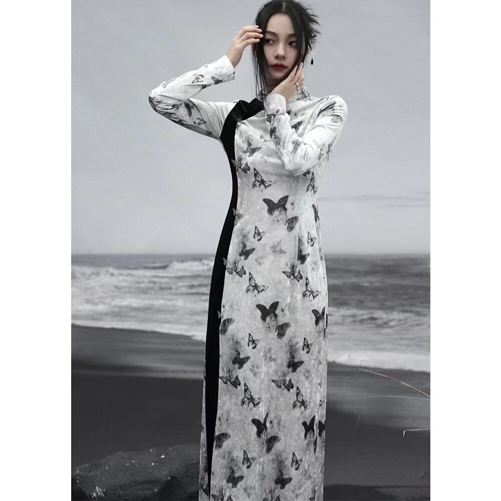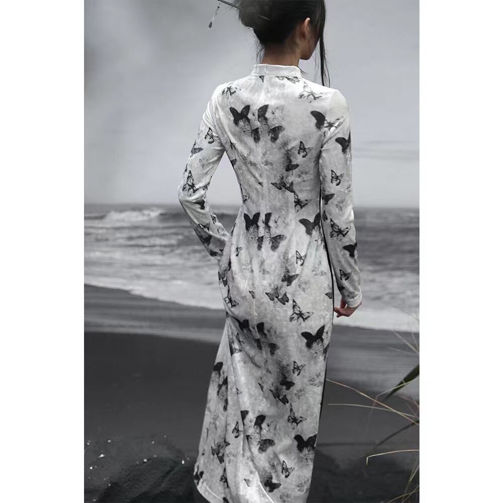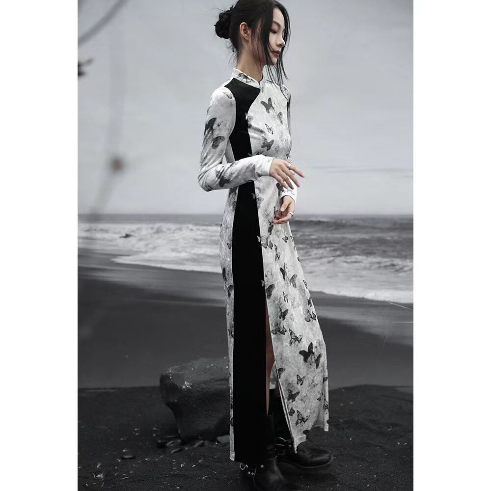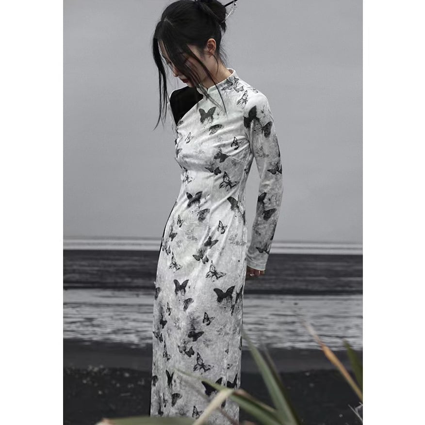 ◇微火持者◇【之x大青龍肆】★チャイナ風ワンピース★ホワイト 入学式 vintage パンク風 蝶々柄