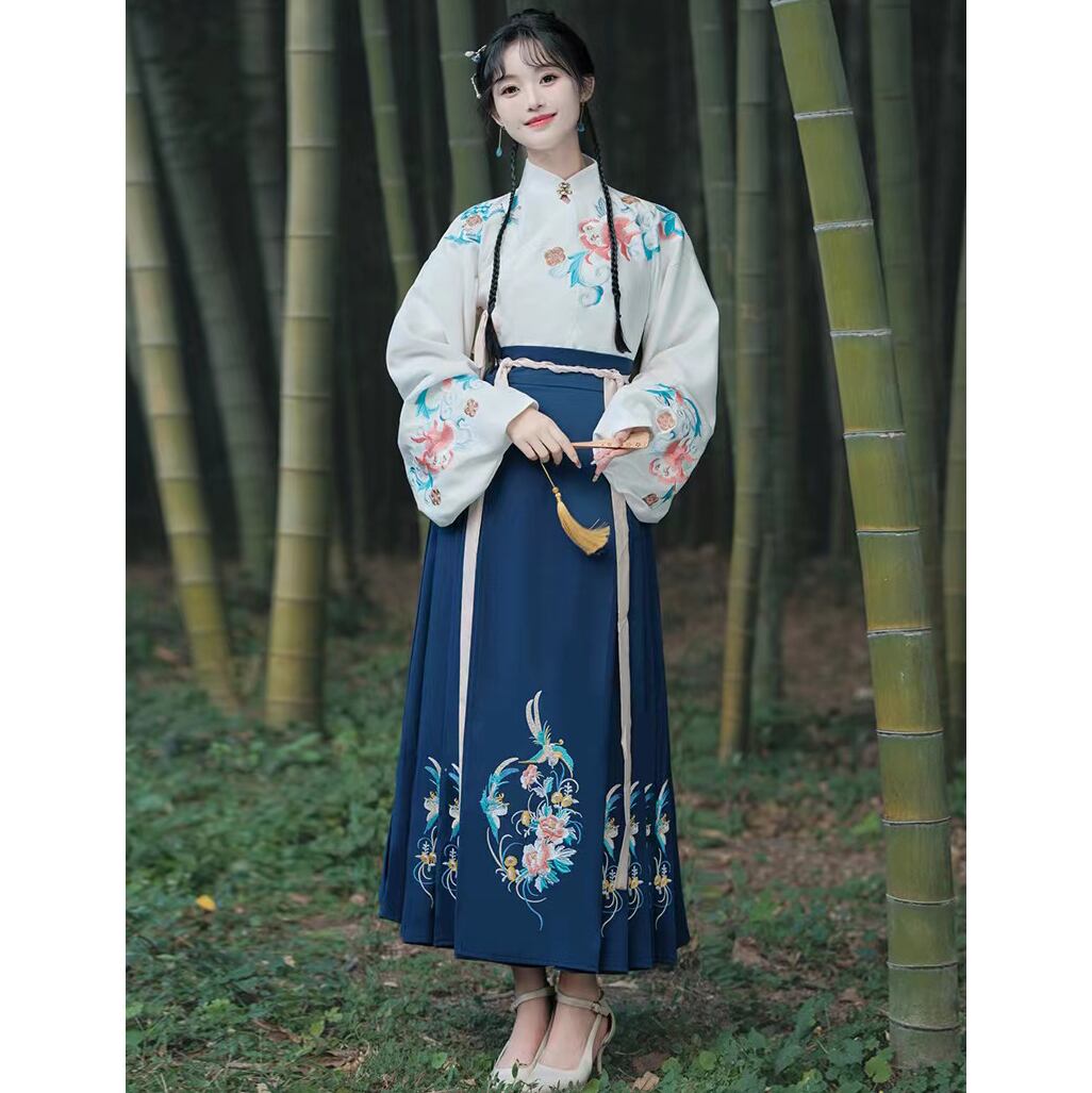 【之】★巻きスカート★ブルー チャイナ風 エレガント 花柄