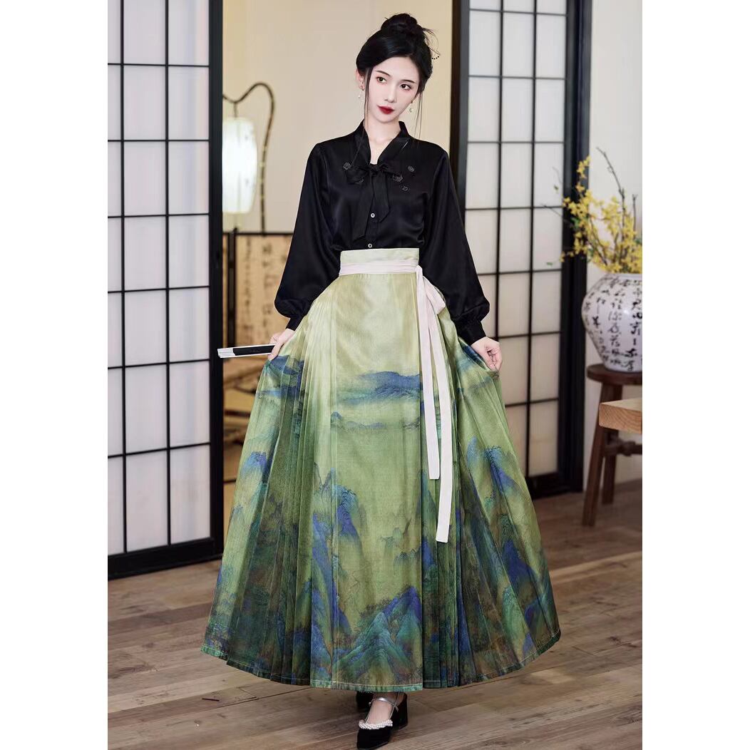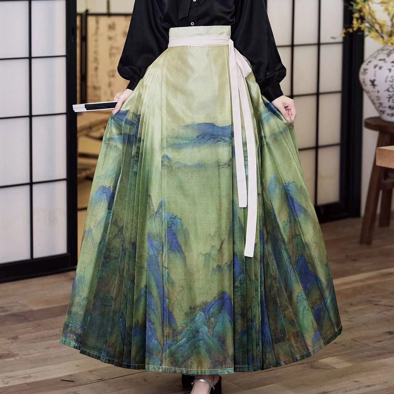 【之】★巻きスカート・千里江山★グリーン チャイナ風 エレガント 花柄 刺繍
