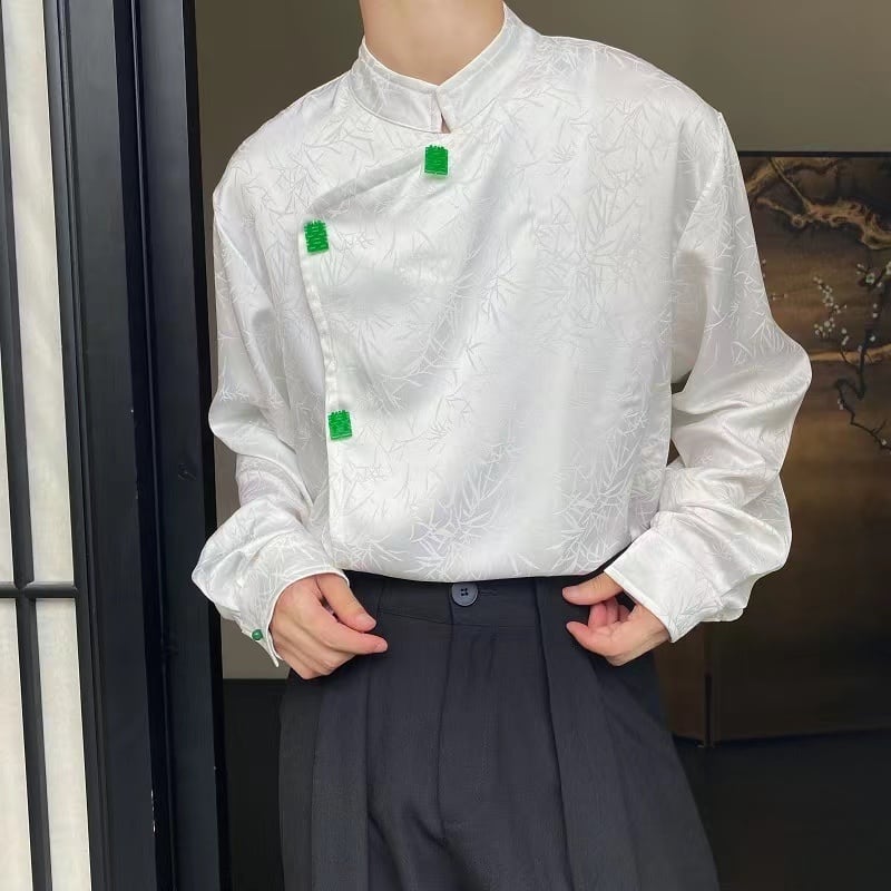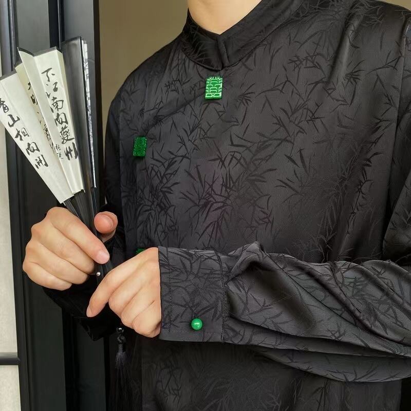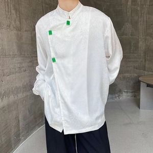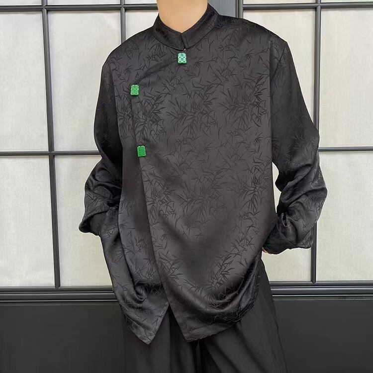 【之】★チャイナ風シャツ★ブラック ホワイト 結び目ボタン ファッション 竹