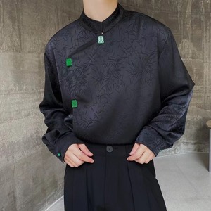 【之】★チャイナ風シャツ★ブラック ホワイト 結び目ボタン ファッション 竹 | 之