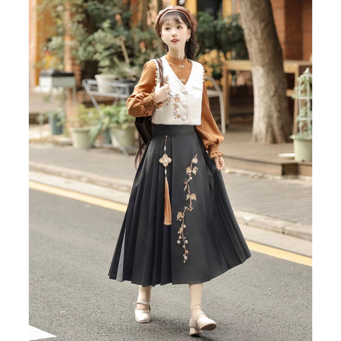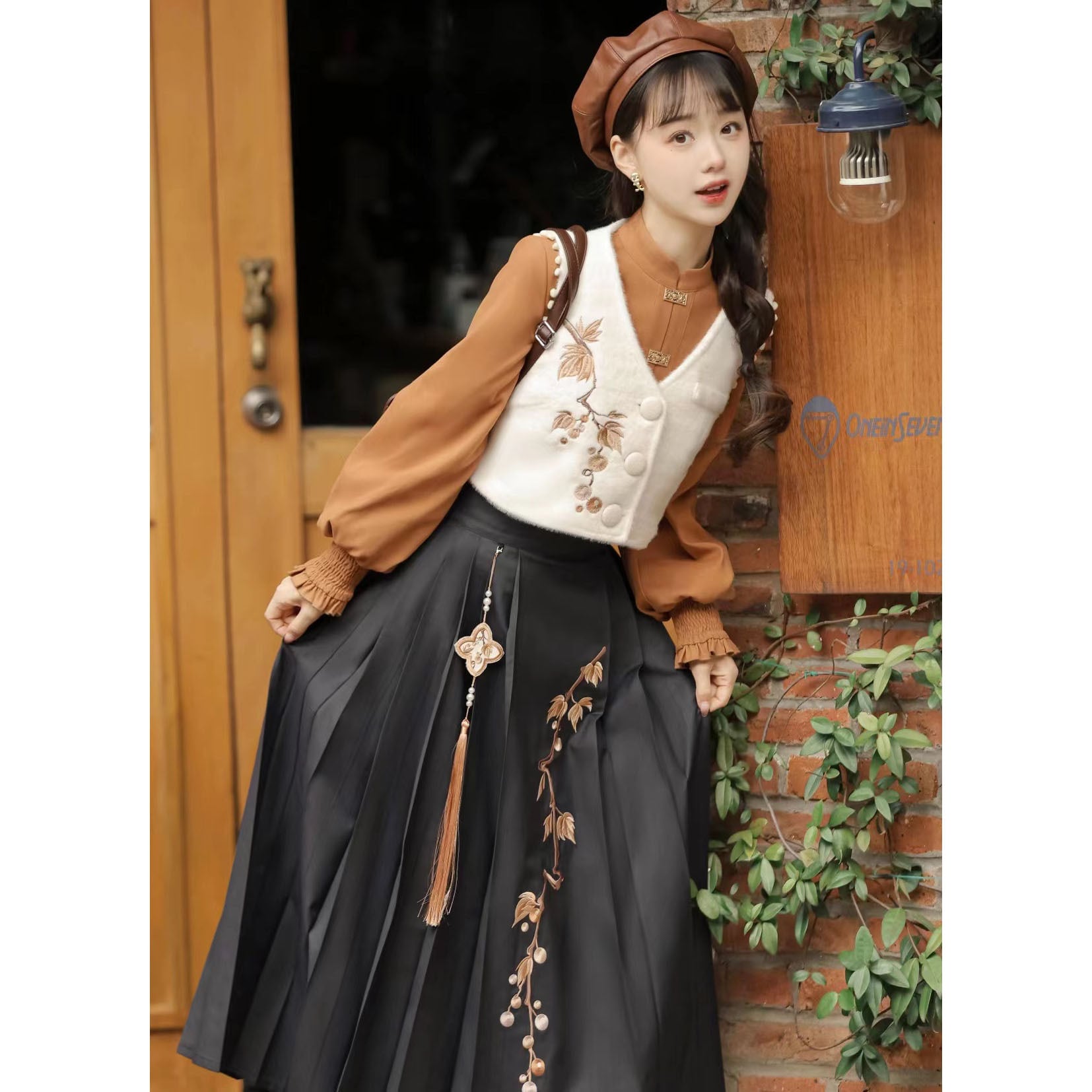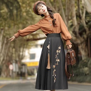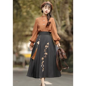 【之】★シャツ★オレンジ チャイナ風 エレガント 結び目ボタン
