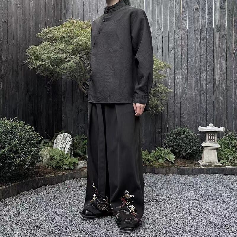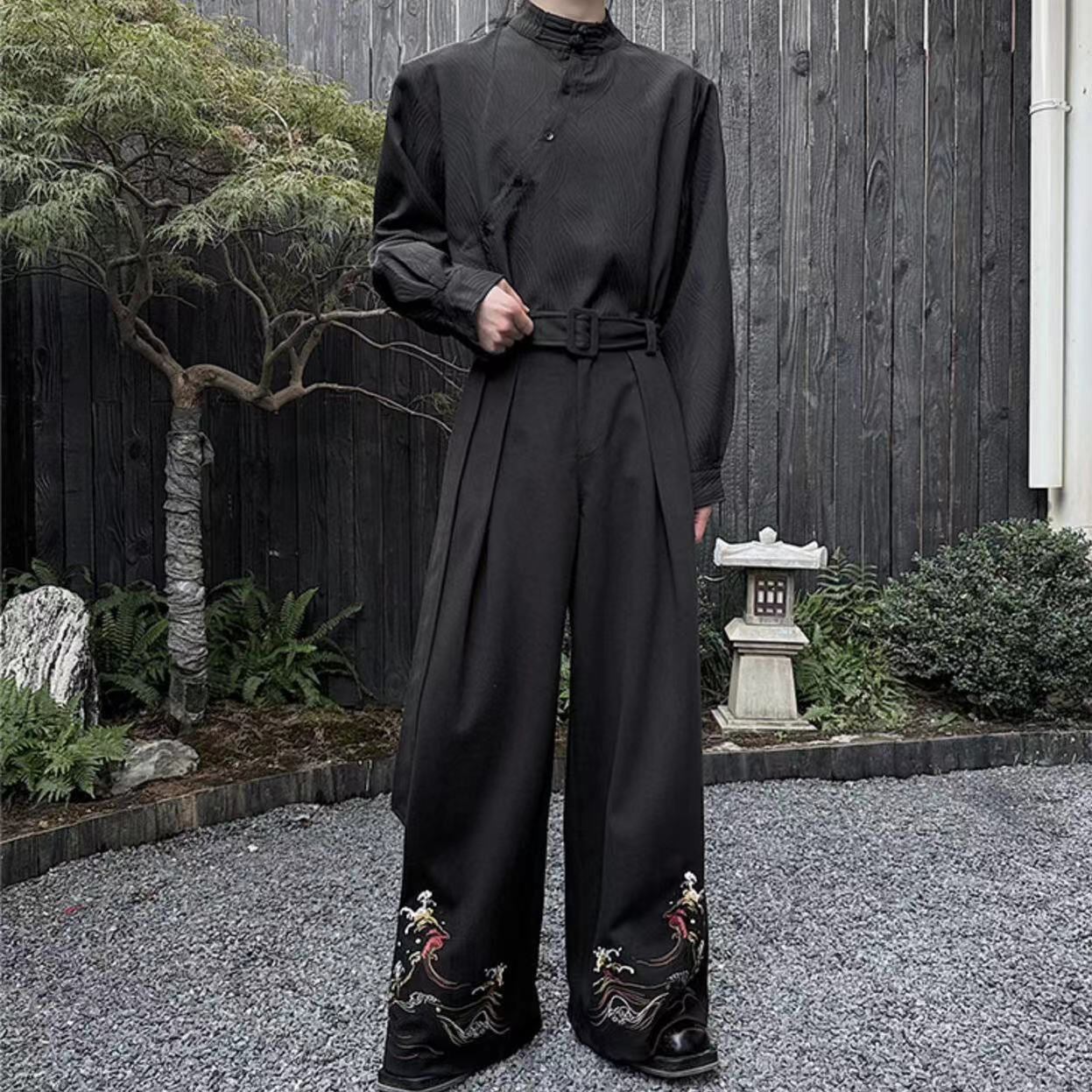 【之】★ズボン★ブラック オフホワイト 中国ファッション チャイナ風 刺繍 | 之