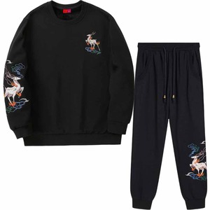 【之】★刺繍パーカー/ズボン★ブラック ファッション 刺繍 龍柄
