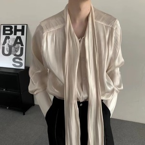 【之】★シャツ★オフホワイト カジュアル リボン ファッション