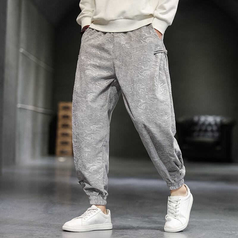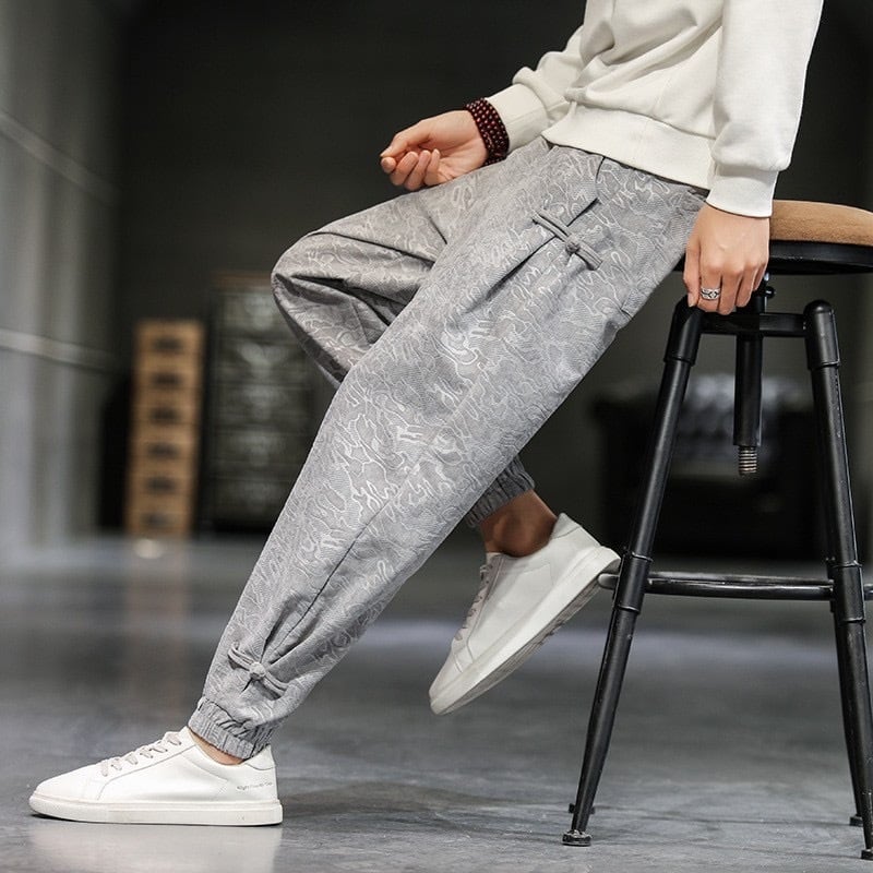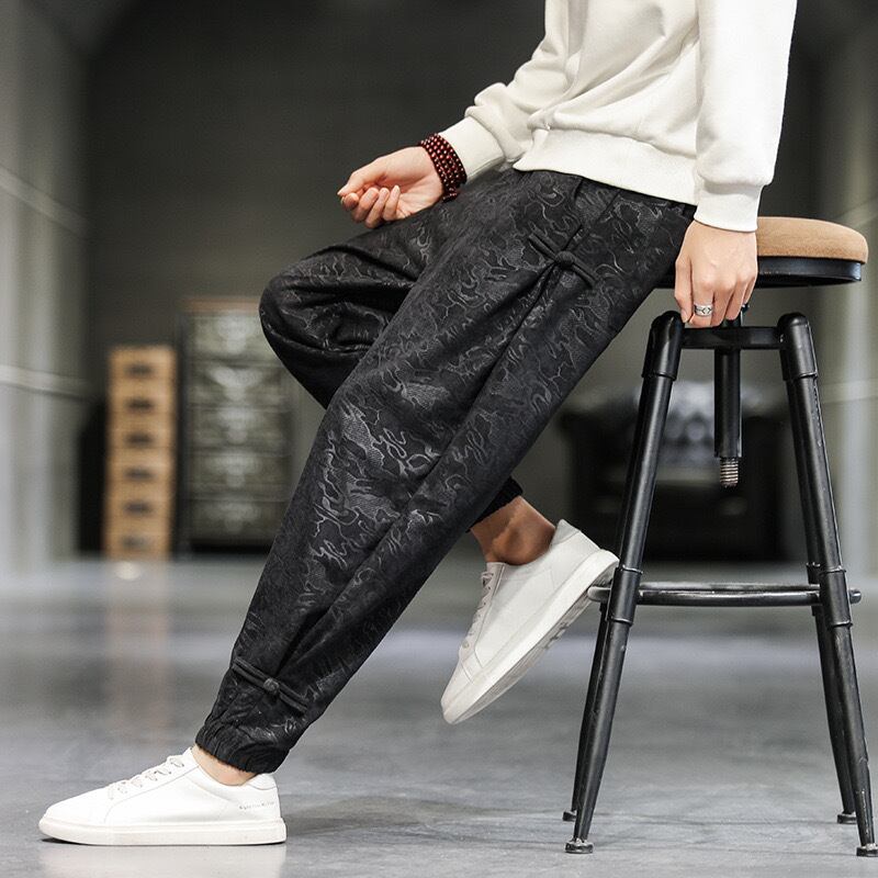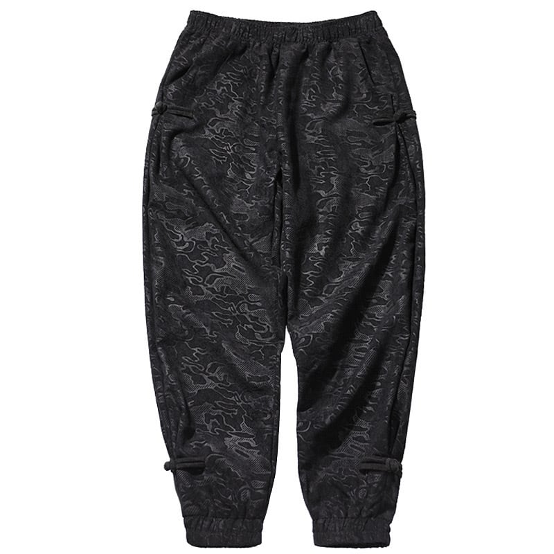 【之】★チャイナ風テーパードパンツ★ブラック グレー カジュアル 龍 結び目ボタン