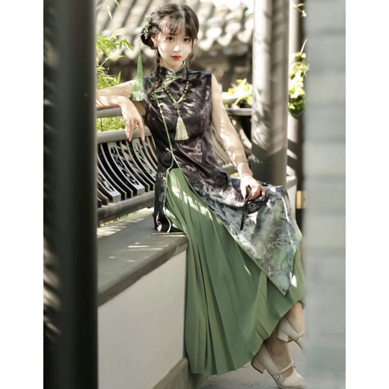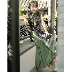 【之】★セットアップ・燕帰時★グリーン 合わせやすい カジュアル 結び目ボタン 燕