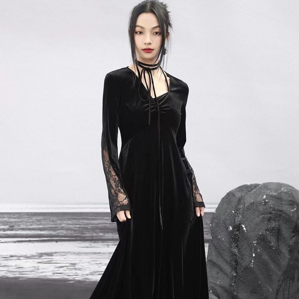 ◇半夏浮生◇【之x大青龍肆】★チャイナ風 ワンピース★ブラック 入学式 ファッション プリント