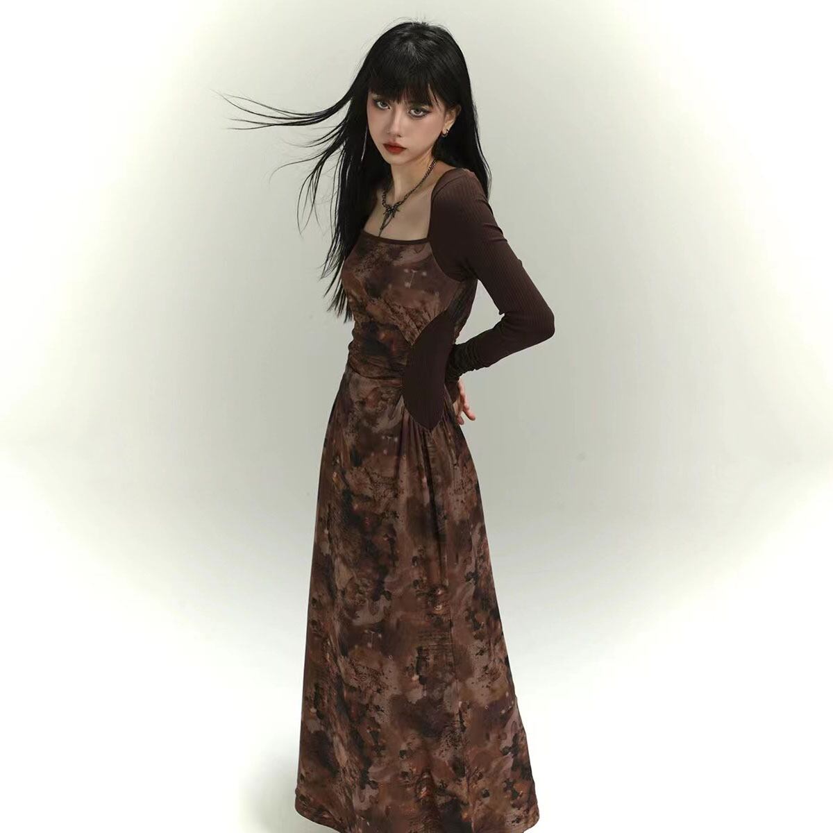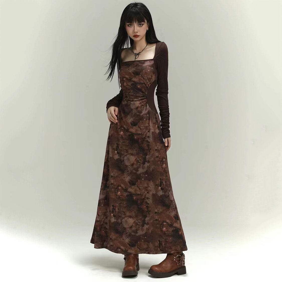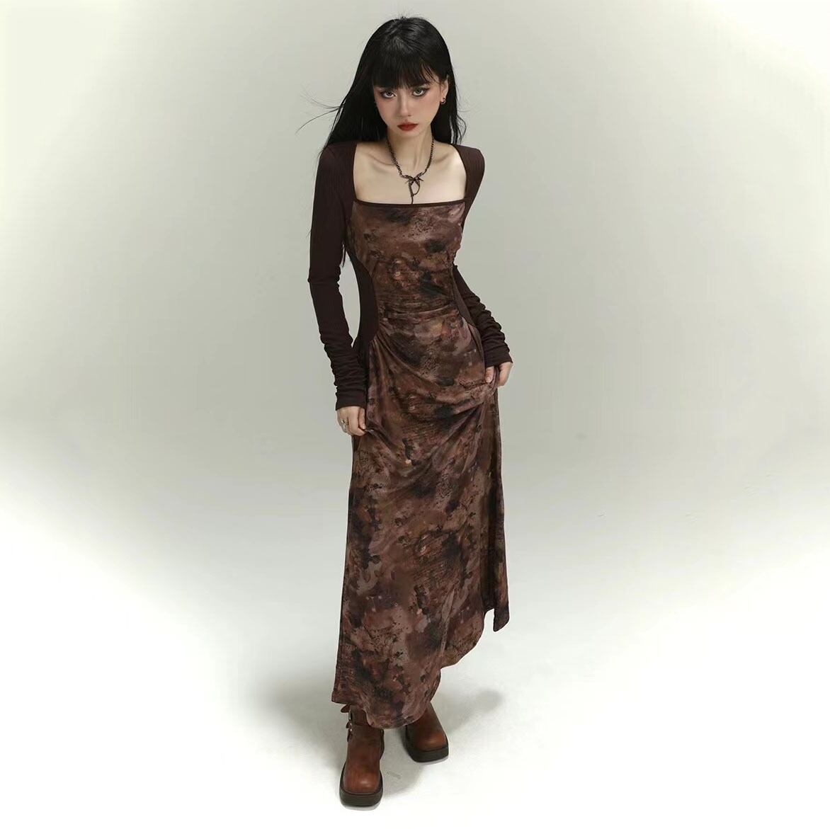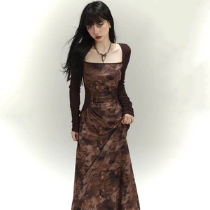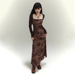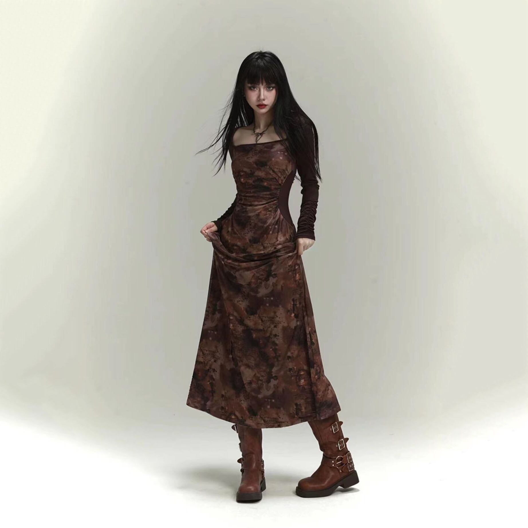✪幽霊少女シリーズ✪【之】★ワンピース★ブラウン 合わせやすい カジュアル アシンメトリー 暗黒風
