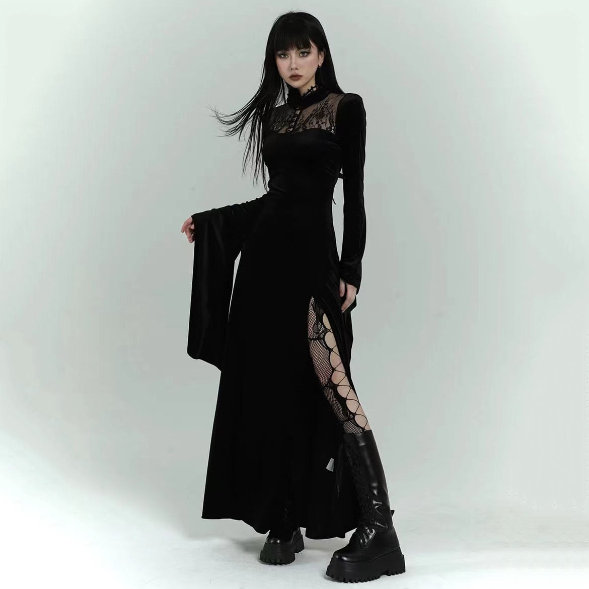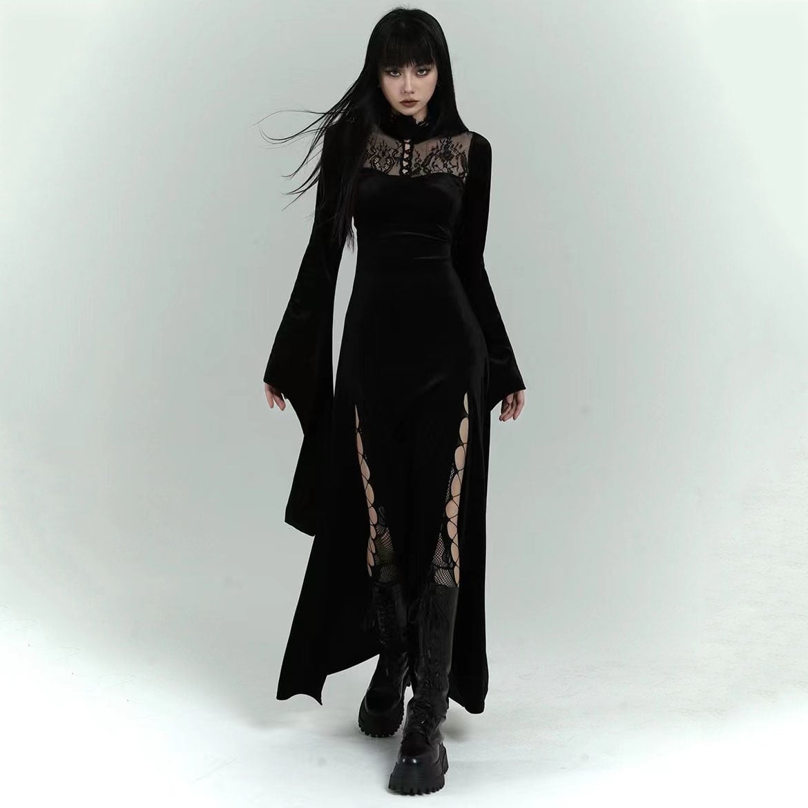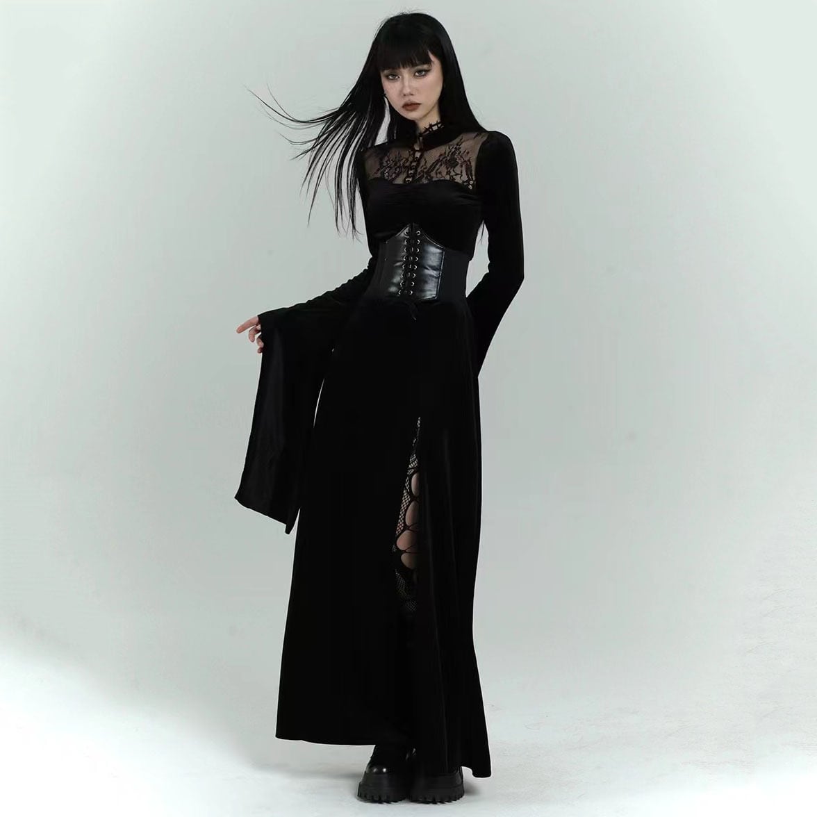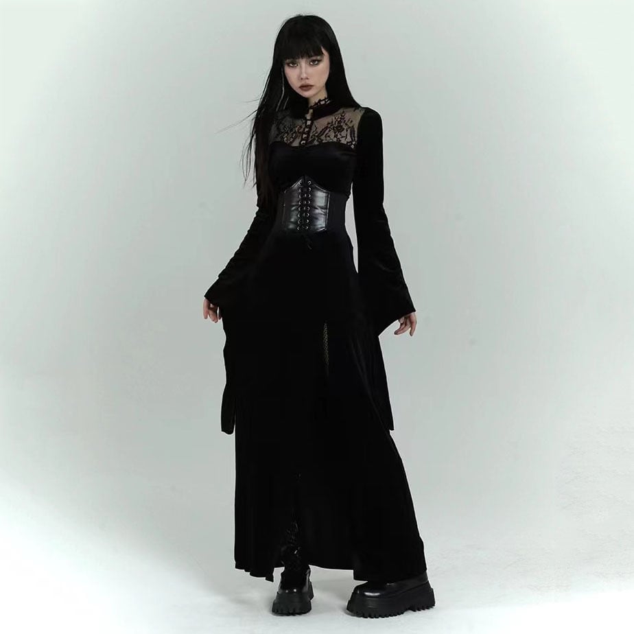 ✪幽霊少女シリーズ✪【之】★ワンピース★ブラック 合わせやすい カジュアル アシンメトリー 暗黒風 腰帯ベルト