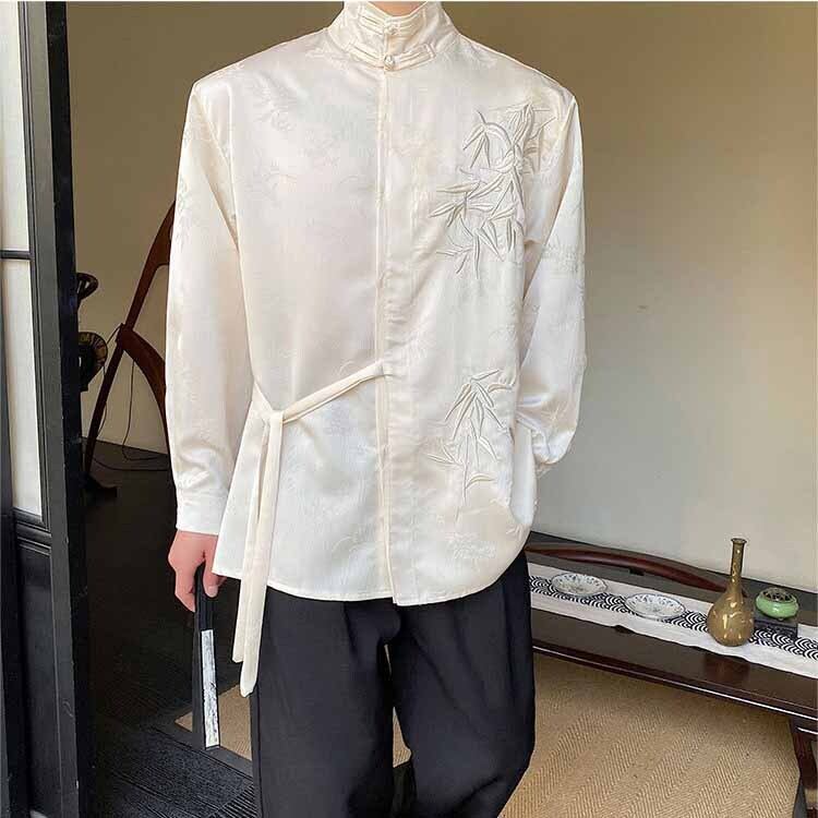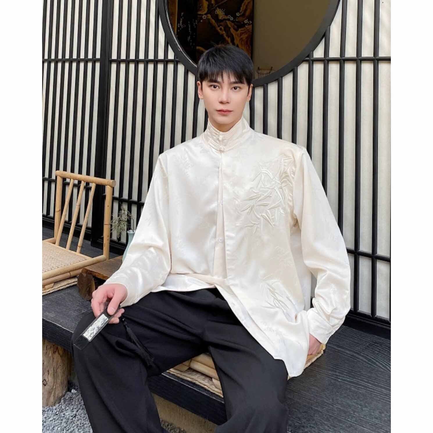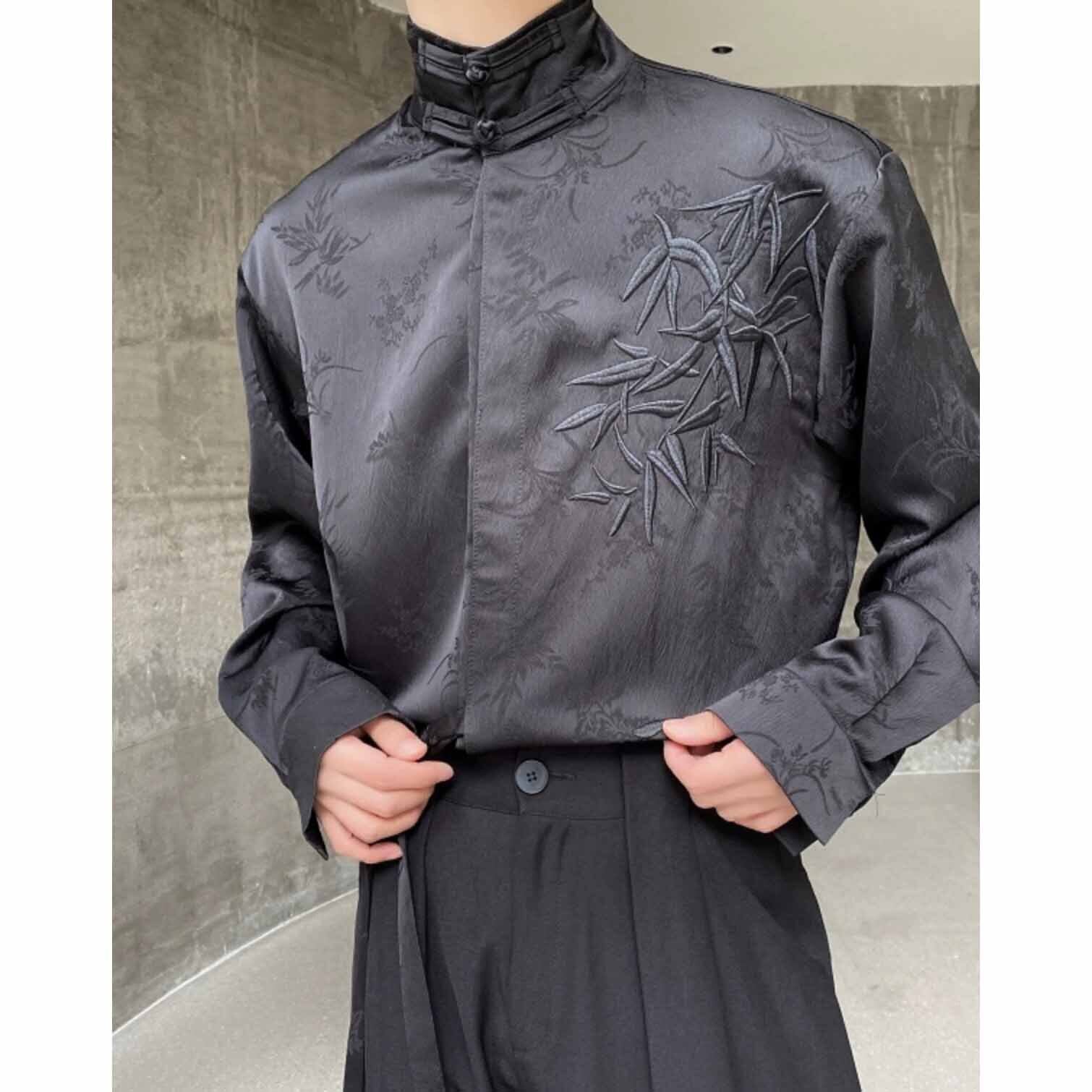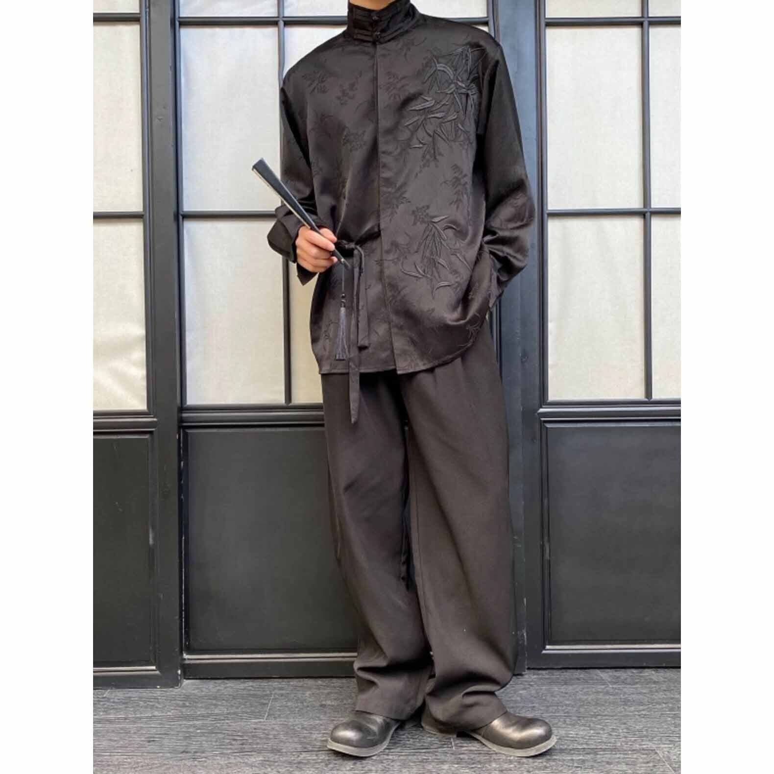 【之】★チャイナ風シャツ★メンズ ブラック ベージュ プリント