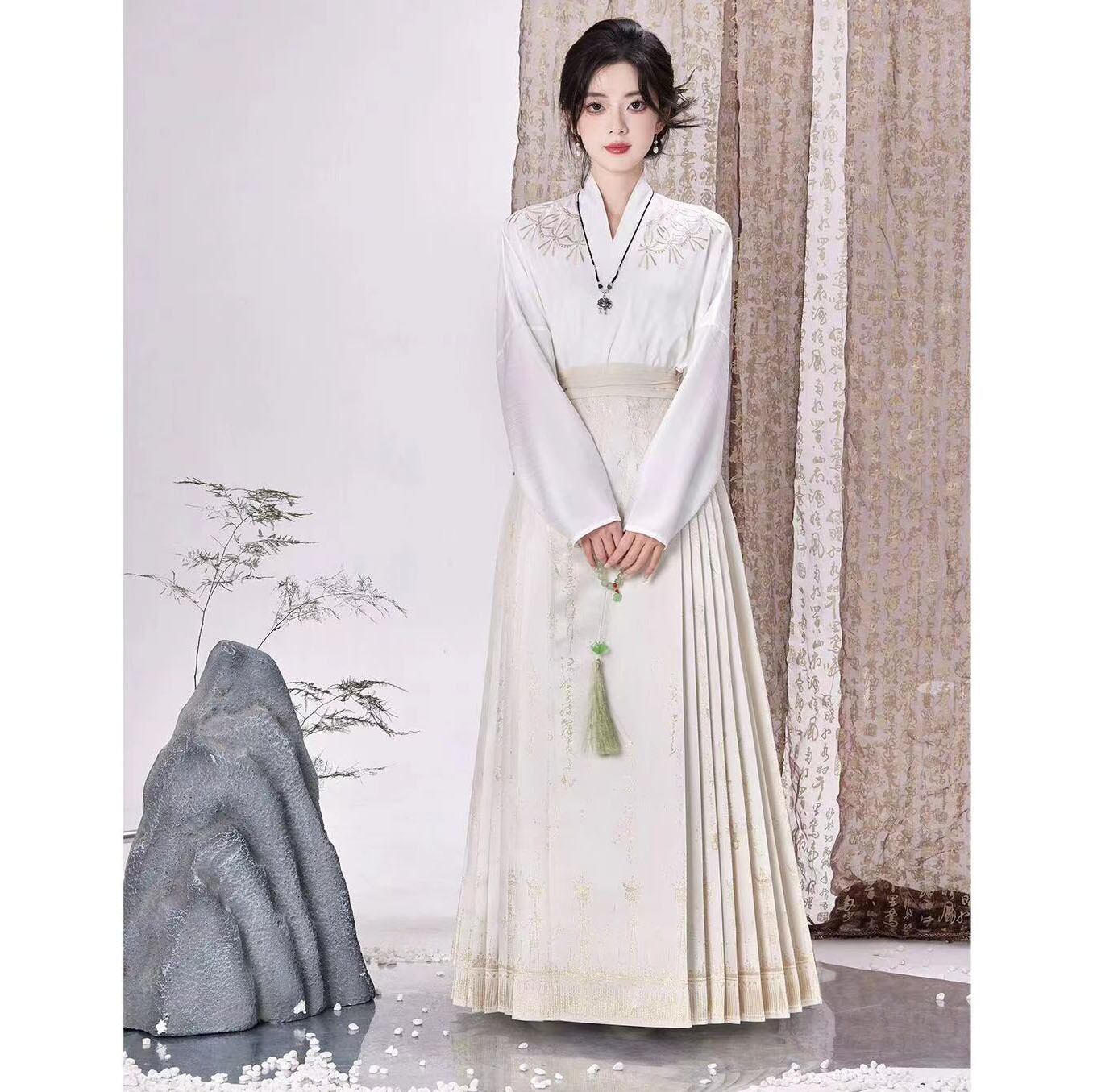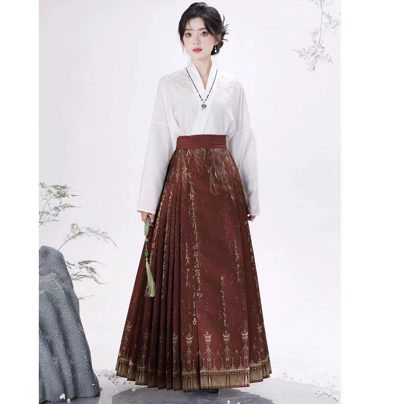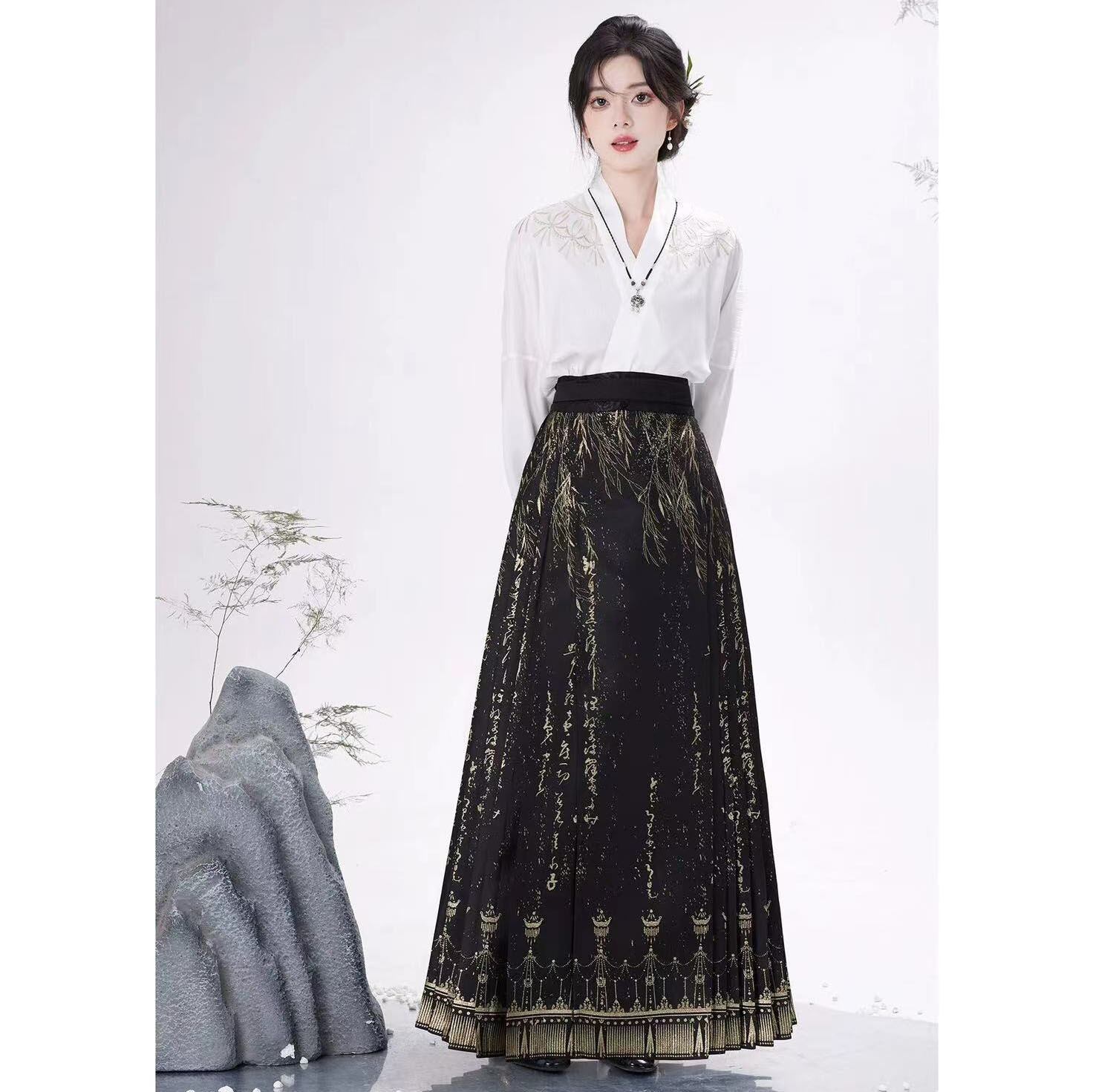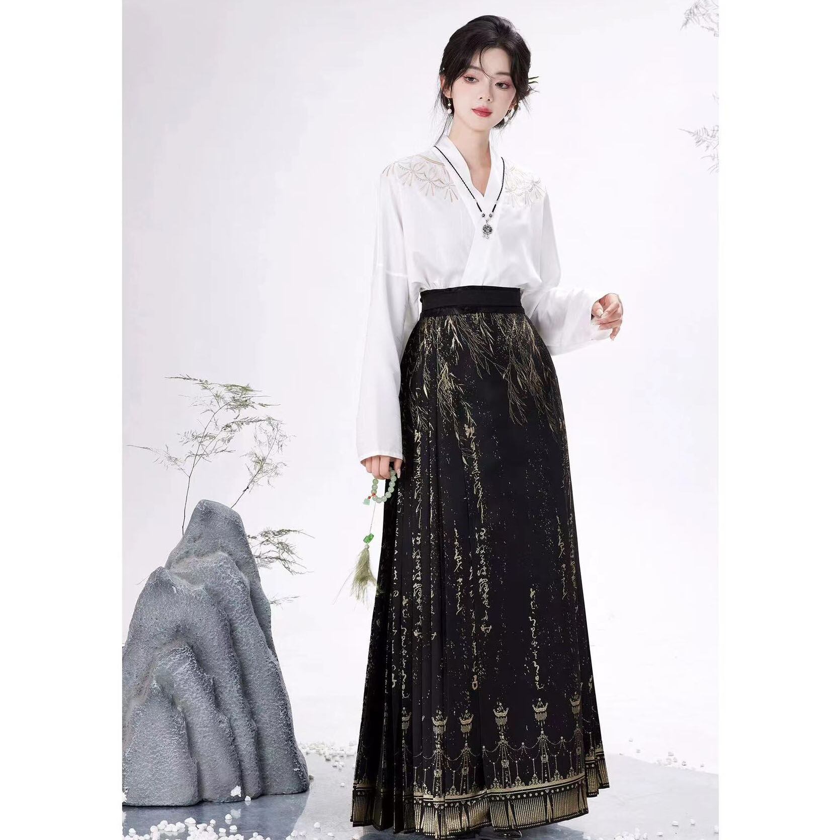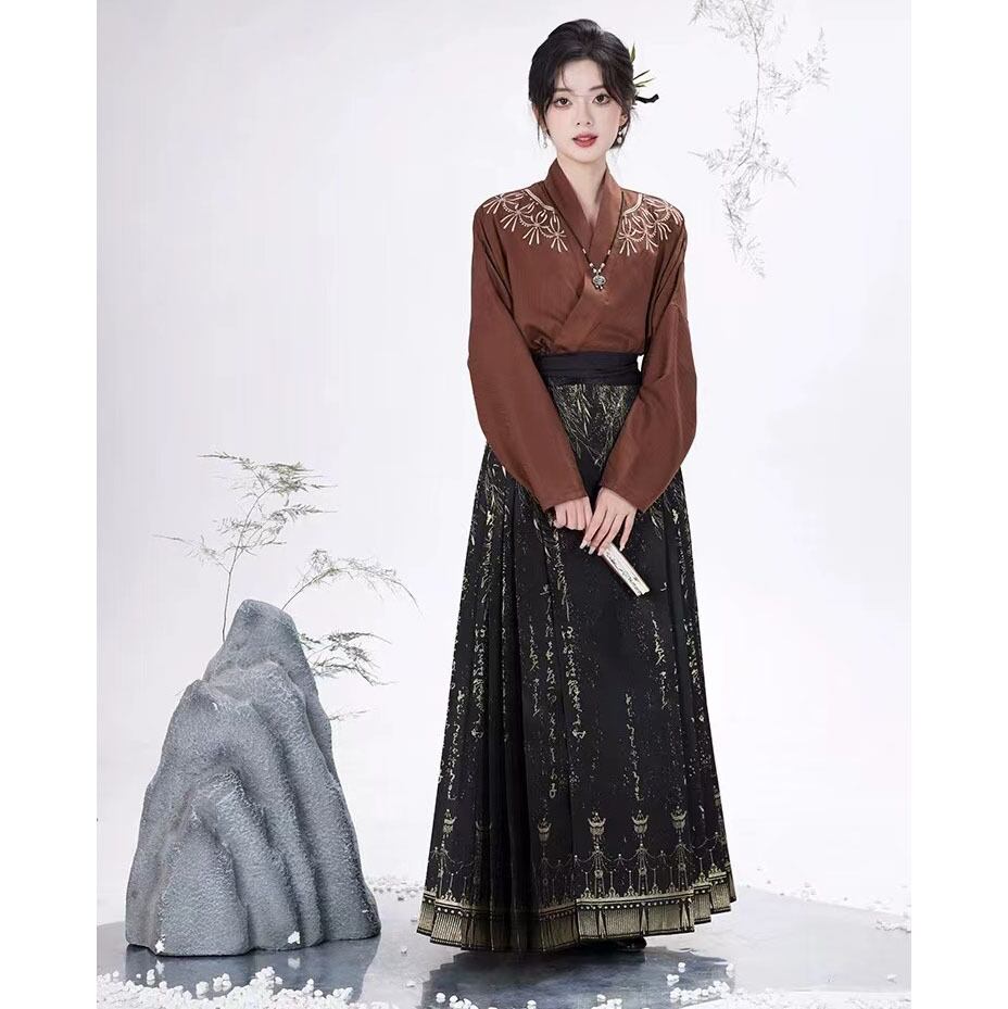 【之x池夏】★チャイナ風 袴 スカート・清寧★ブラック ブラウン オフホワイト チャイナ風 漢服 レディース 二次会 女子会 成人式