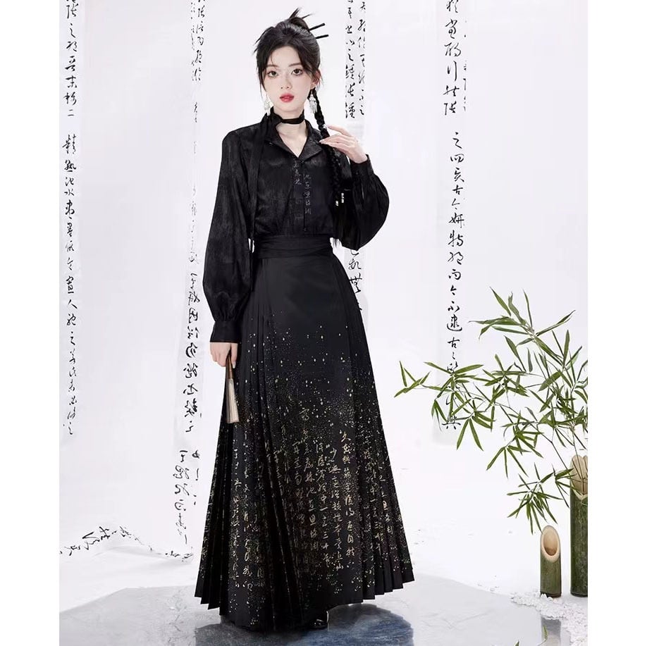 【之x池夏】★チャイナ風 袴 スカート・帰園田居★ブラック レッド ダークブルー チャイナ風 漢服 レディース 二次会 女子会 成人式