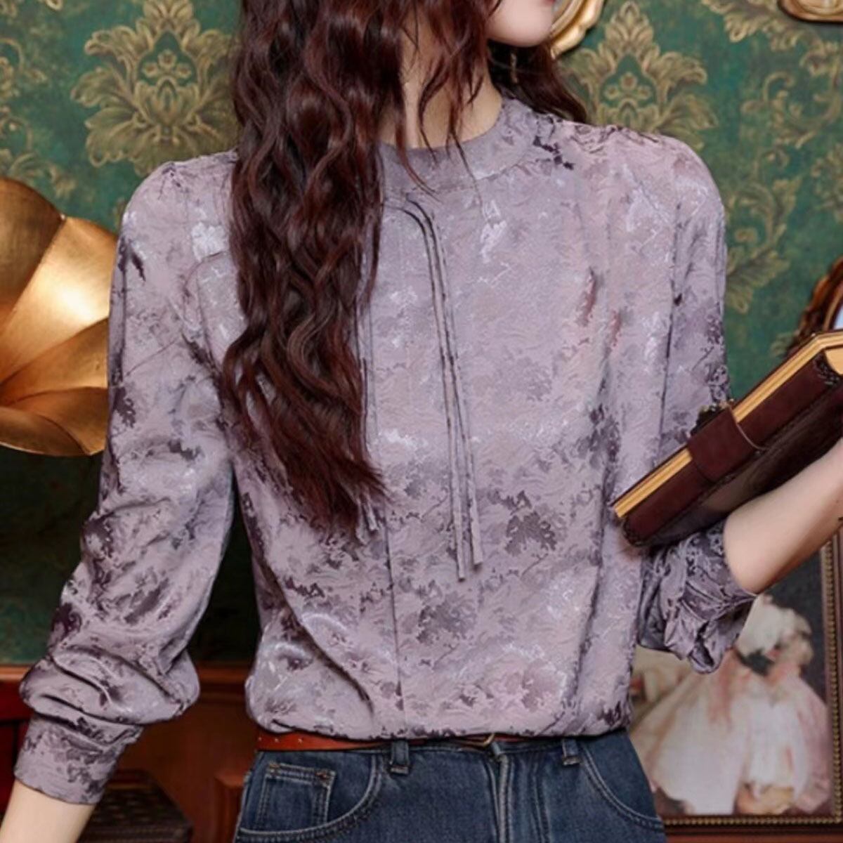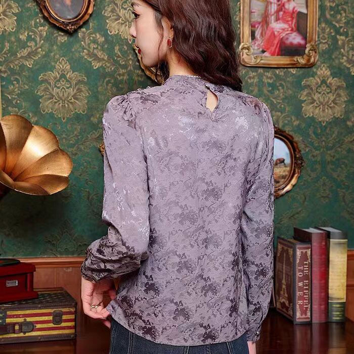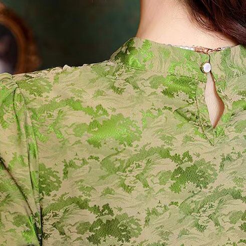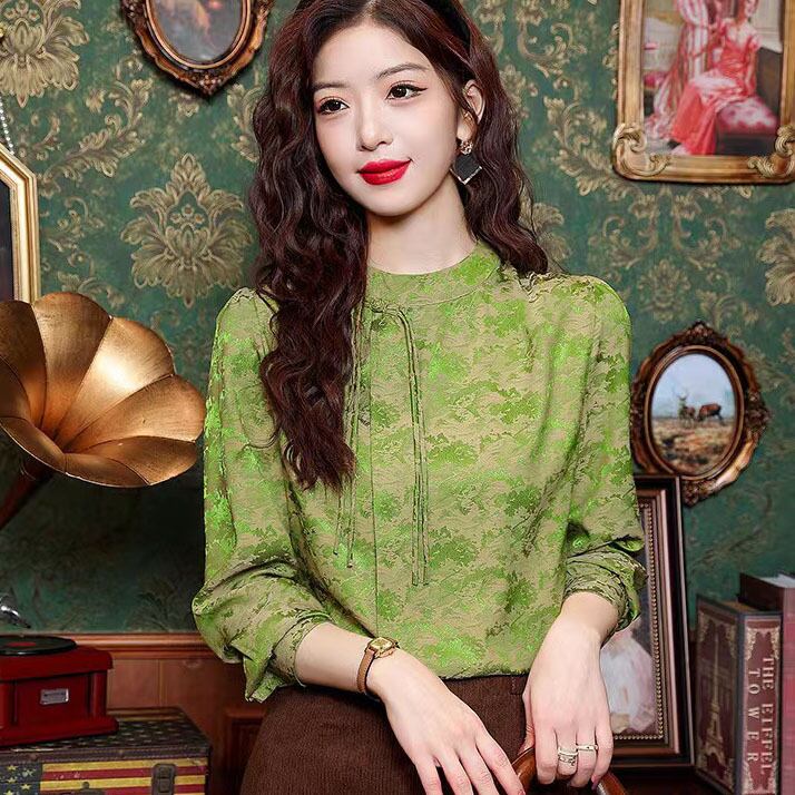 【之】★シャツ★パープル グリーン チャイナ風 カジュアル 合わせやすい 結び目ボタン