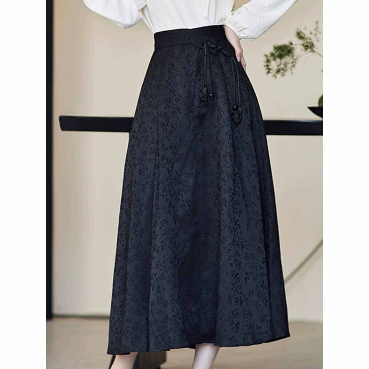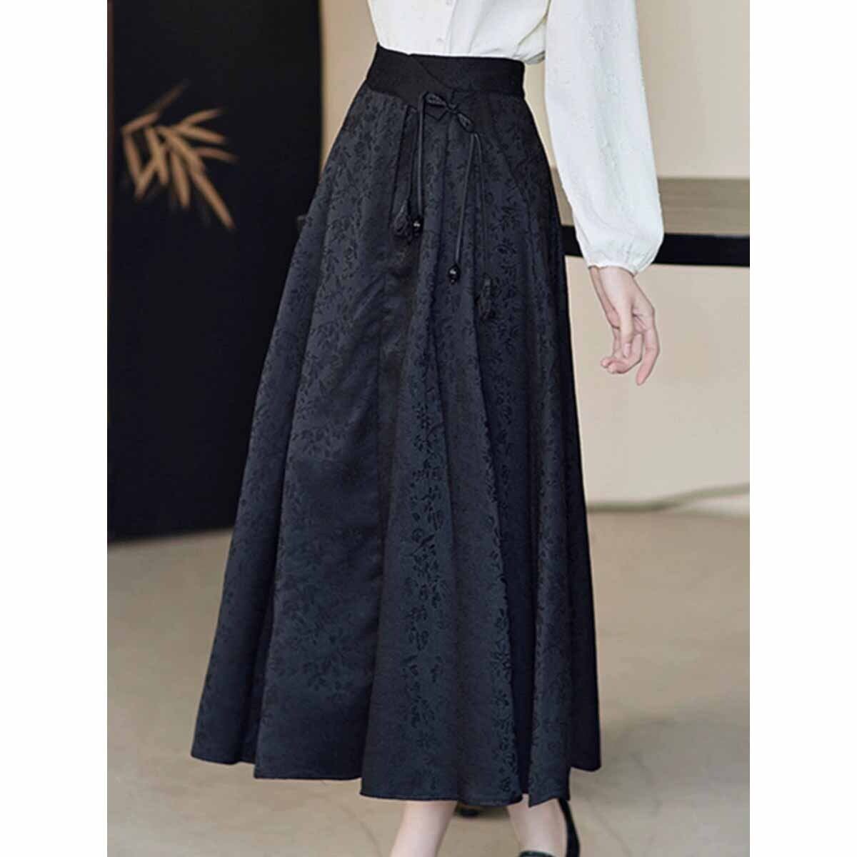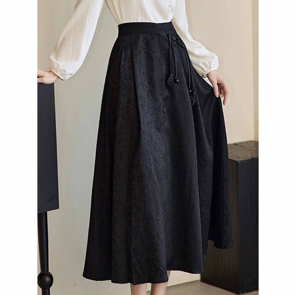 【之】★スカート★ブラック チャイナ風 合わせやすい 結び目ボタン レディース