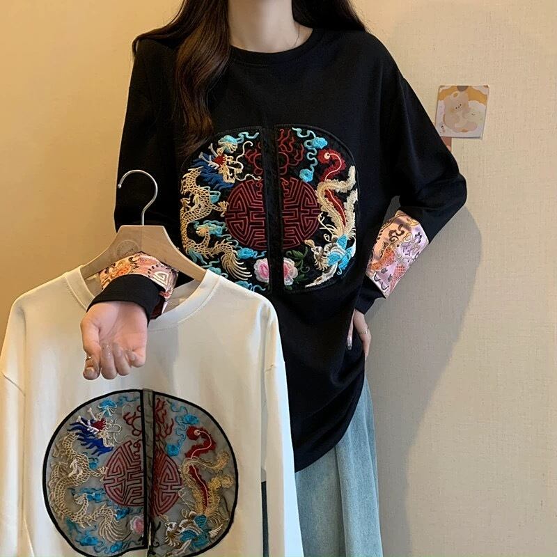 【之】★Tシャツ★ブラック ホワイト チャイナ風 結び目ボタン レディース