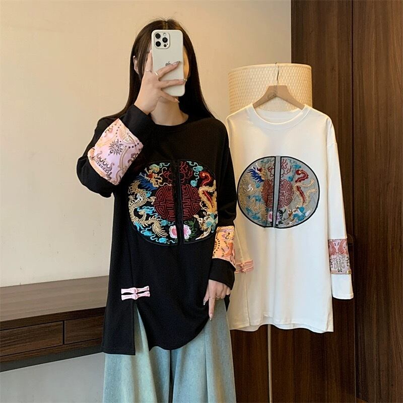 【之】★Tシャツ★ブラック ホワイト チャイナ風 結び目ボタン レディース | 之