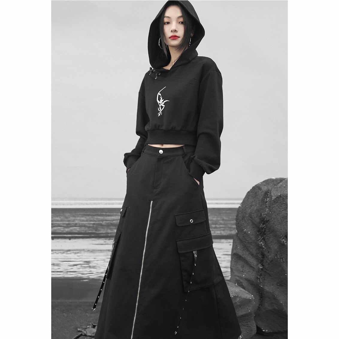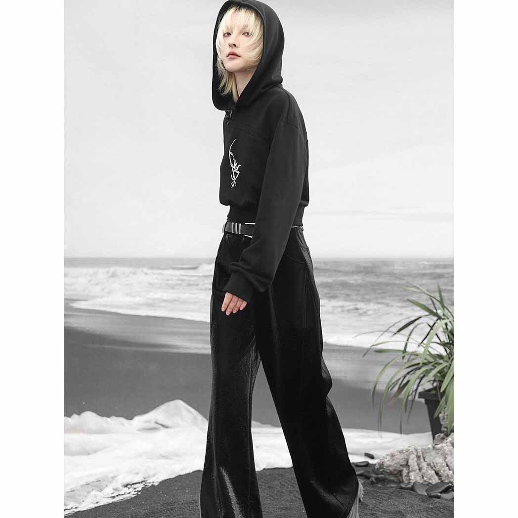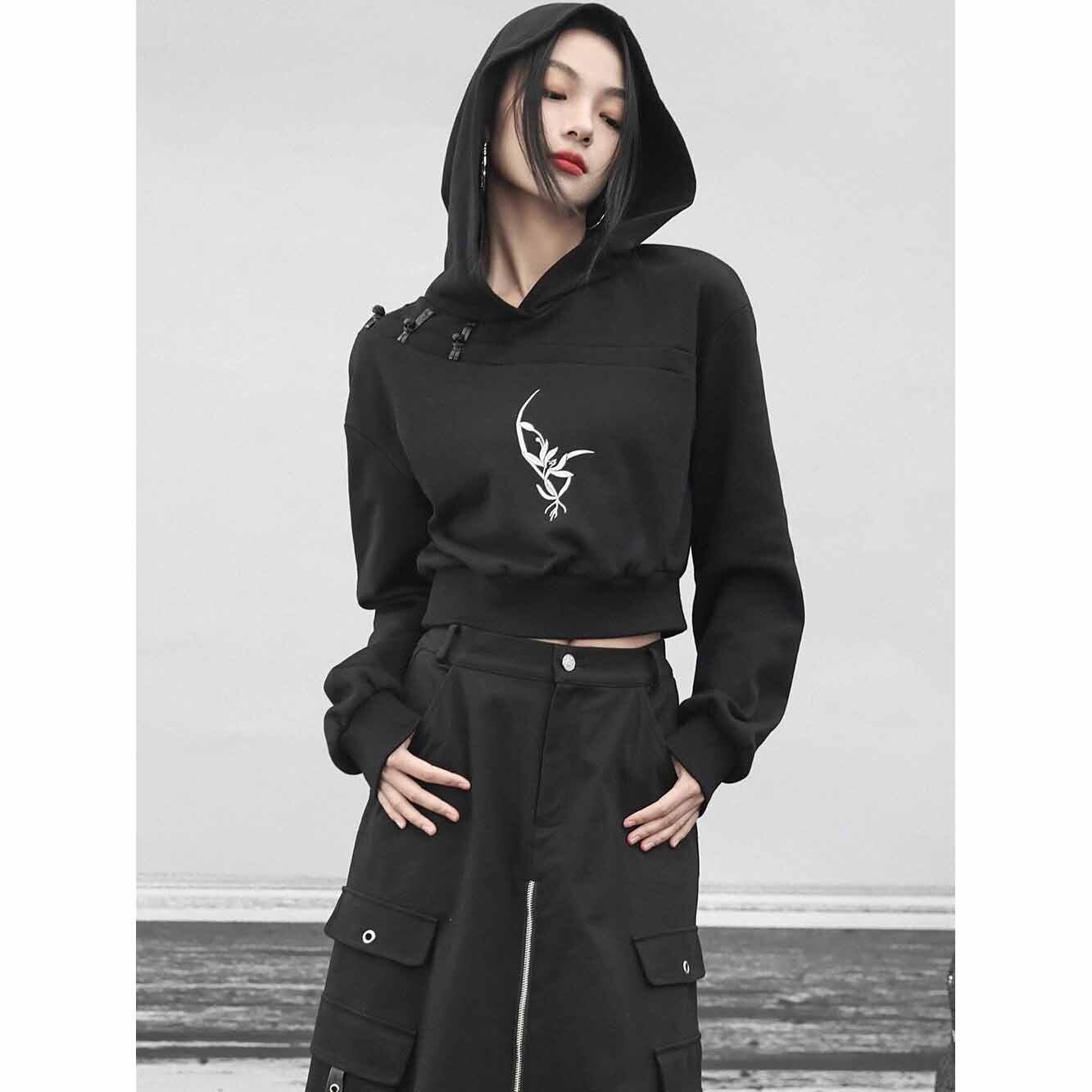◇有龙乃大◇【之x大青龍肆】★パーカー★ブラック 刺繍 花柄 入学式 レディース服 帽子付き