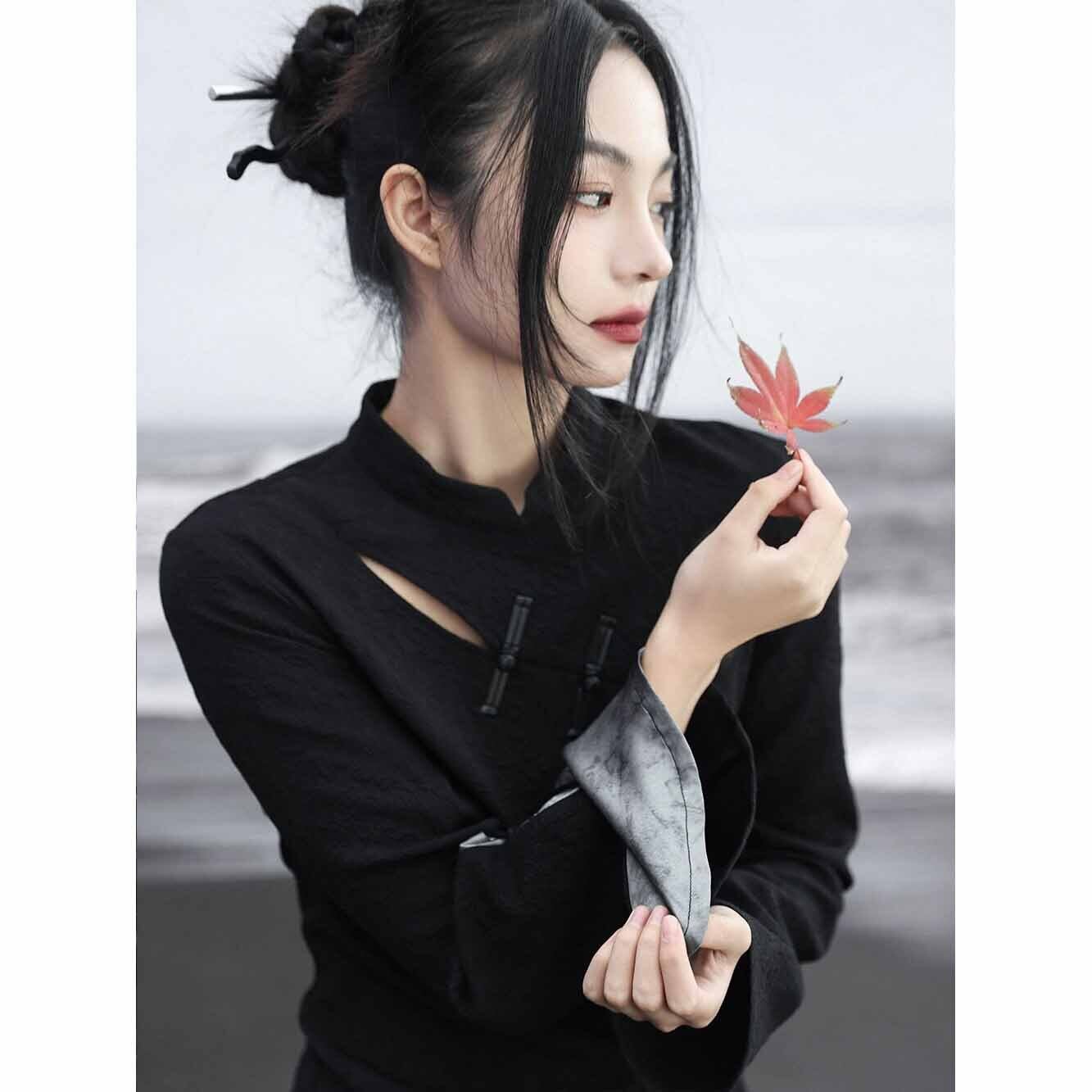 ◇有龙乃大◇【之x大青龍肆】★ワンピース★ブラック チャイナドレス 結びボタン 入学式 レディース服