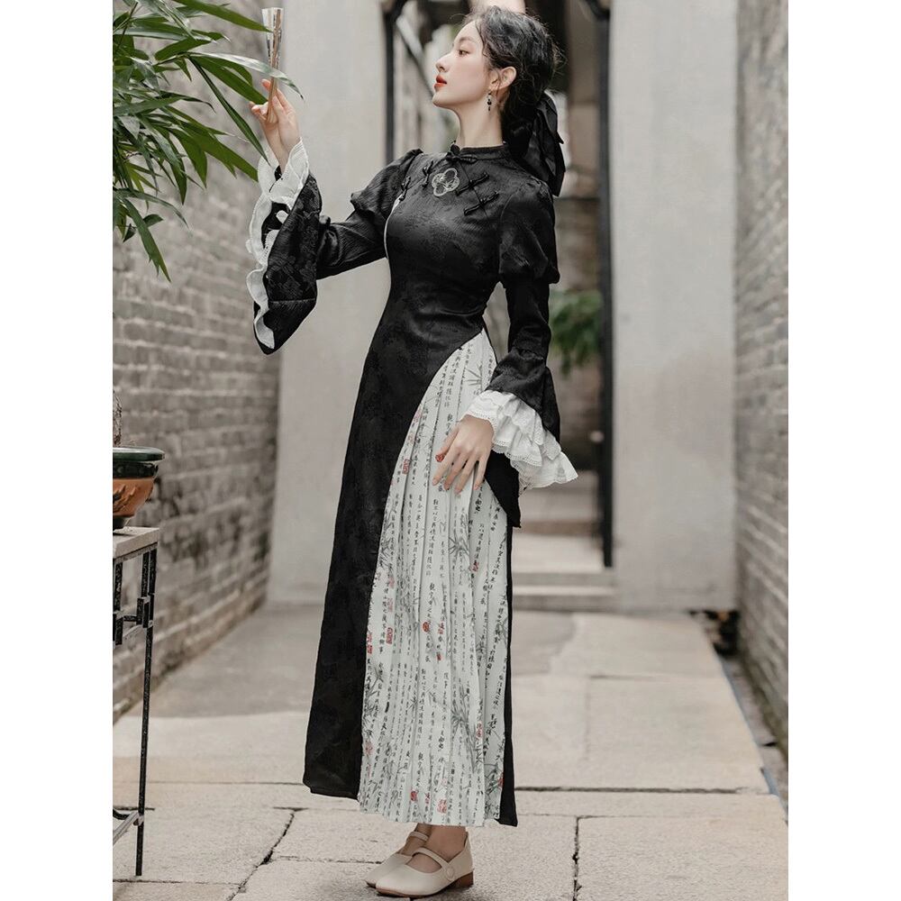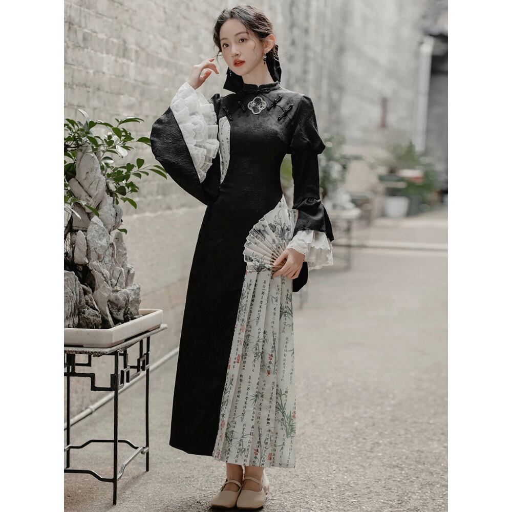 【之】★ワンピース★ブラック チャイナドレス コスプレ ロリィタ族 入学式