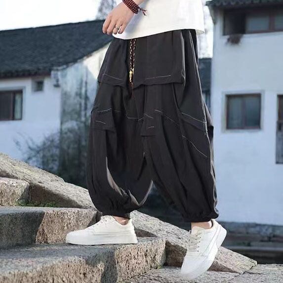 【之】★ワイドパンツ★ブラック ファスナー デザイン メンズ 中国ファッション
