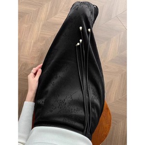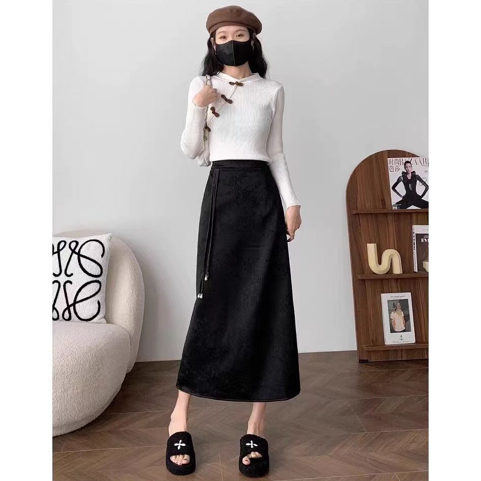 【之】★ロングスカート★ブラック チャイナ風 花柄 カジュアル プリント