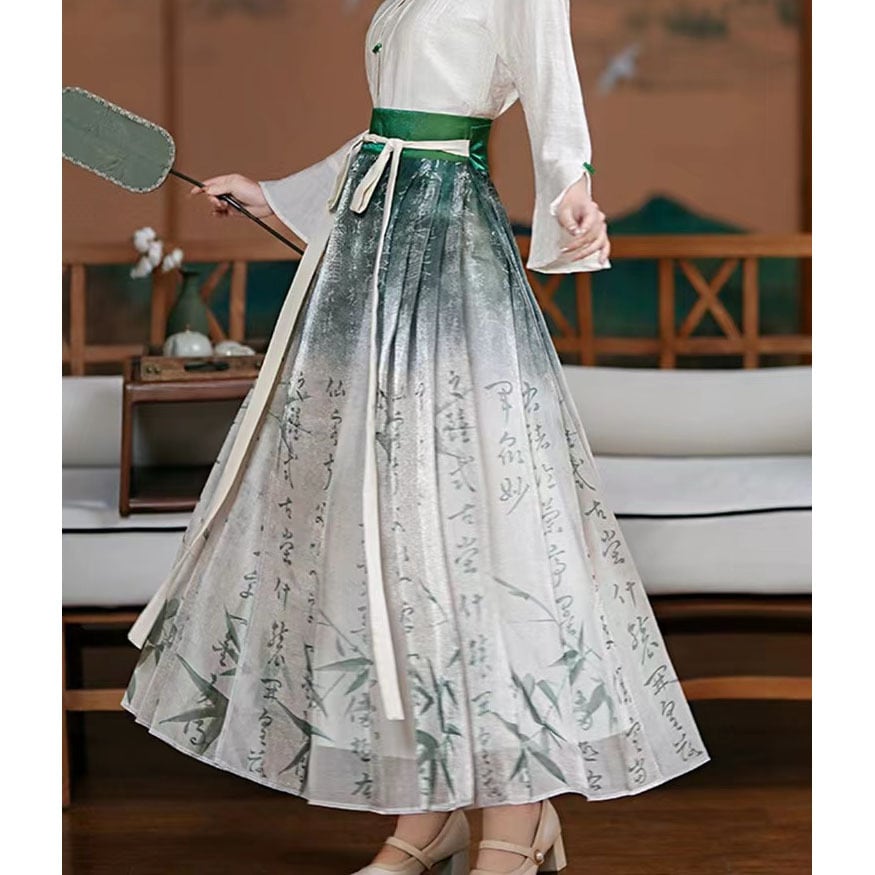 【之】★巻きスカート★グリーン チャイナ風 結び目ボタン 漢字