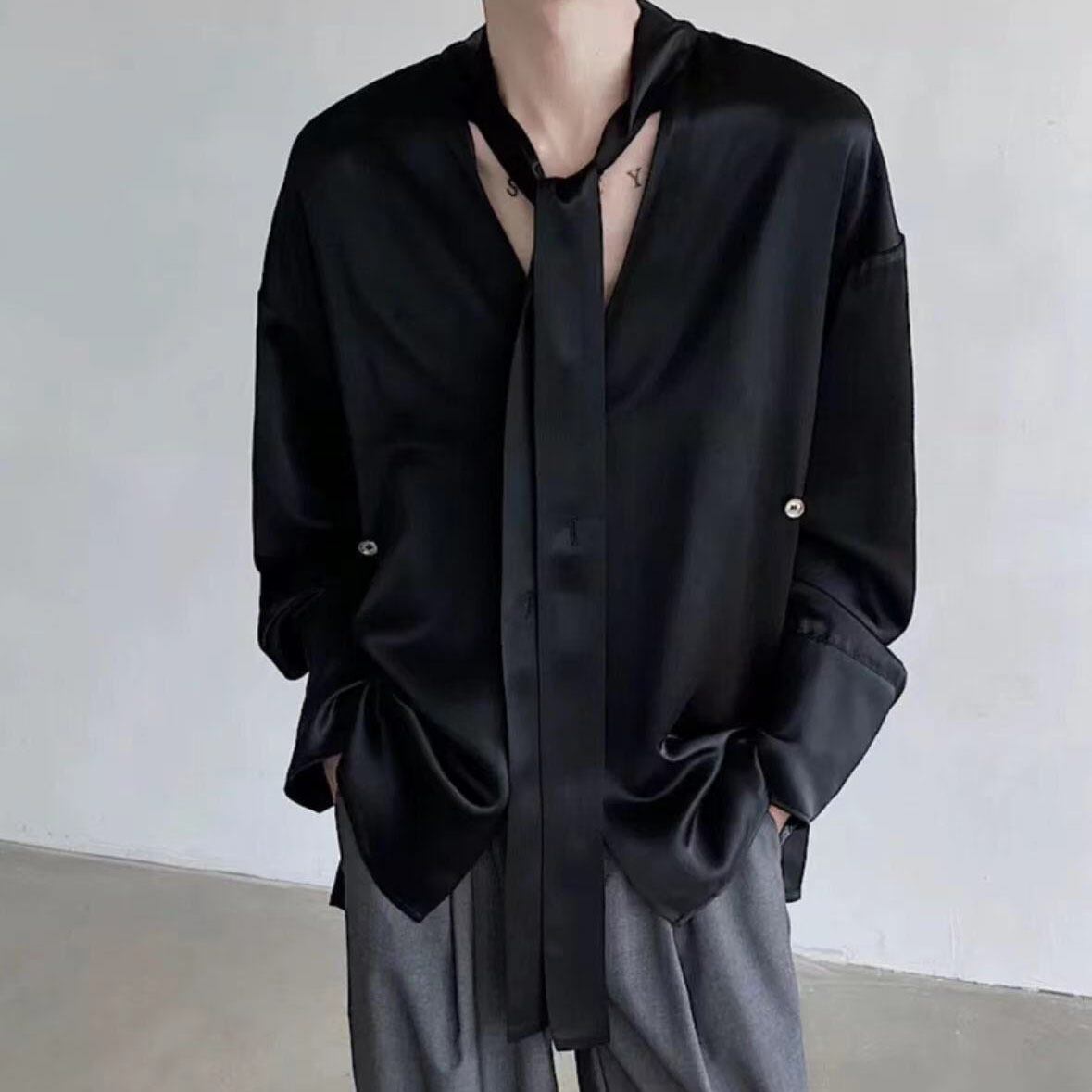 【之】★シャツ★ブラック ファッション vintage 合わせやすい カジュアル