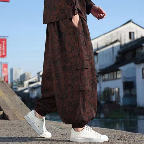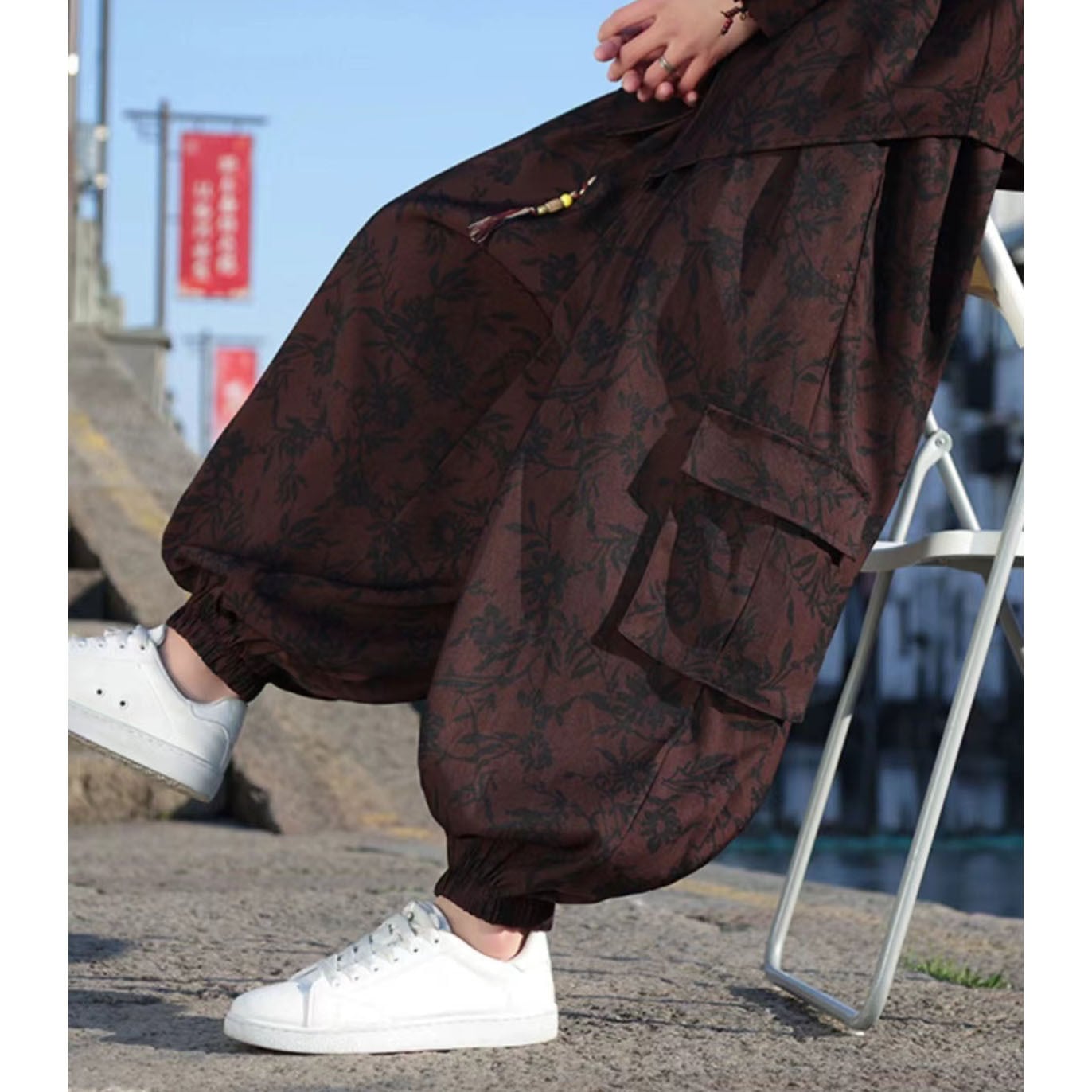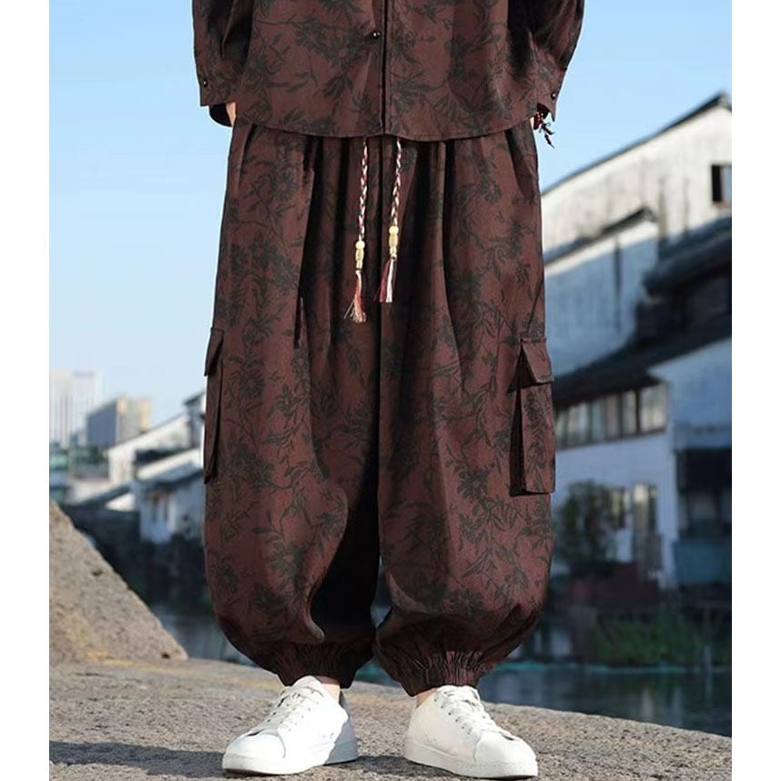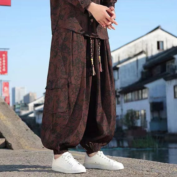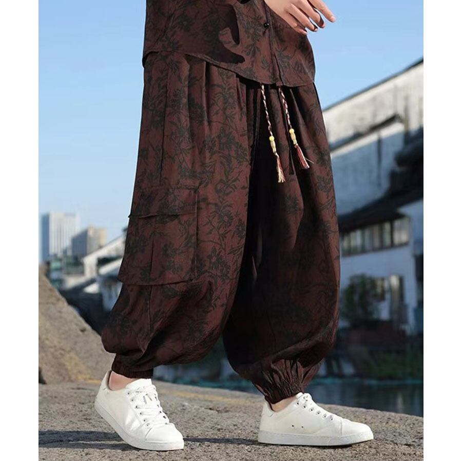 【之】★チャイナ風テーパードパンツ★コーヒー色 合わせやすい カジュアル