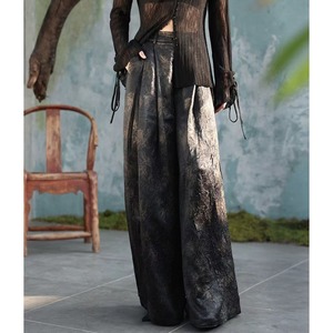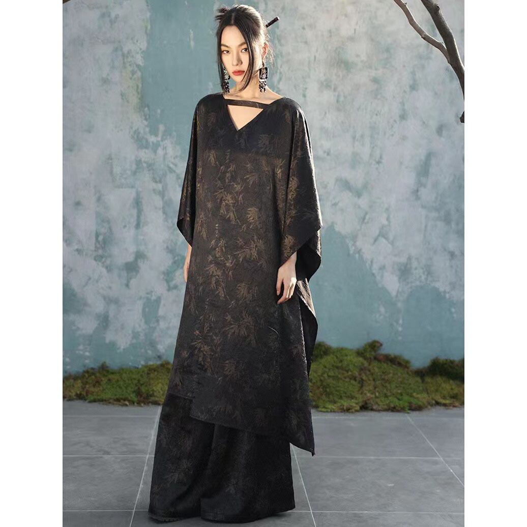 ◇白墙青瓦◇【之x大青龍肆】★ワイドパンツ★ブラック 竹 vintage ファッション 合わせやすい