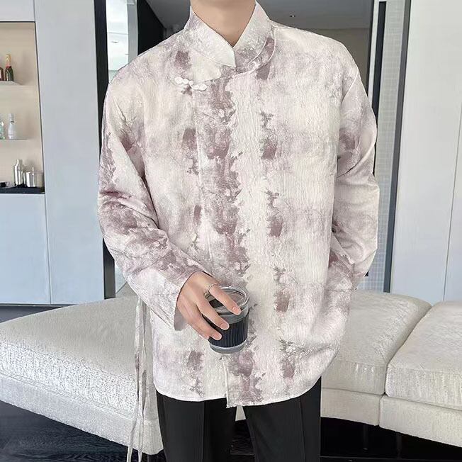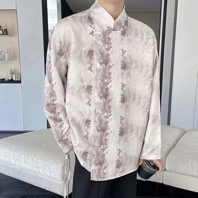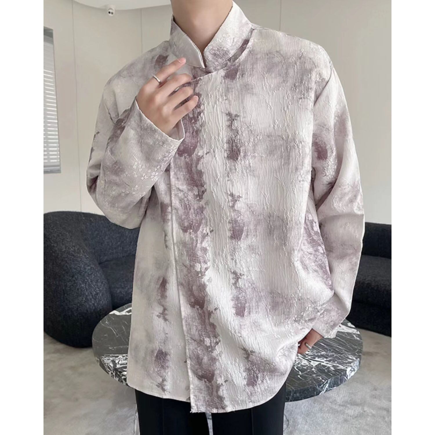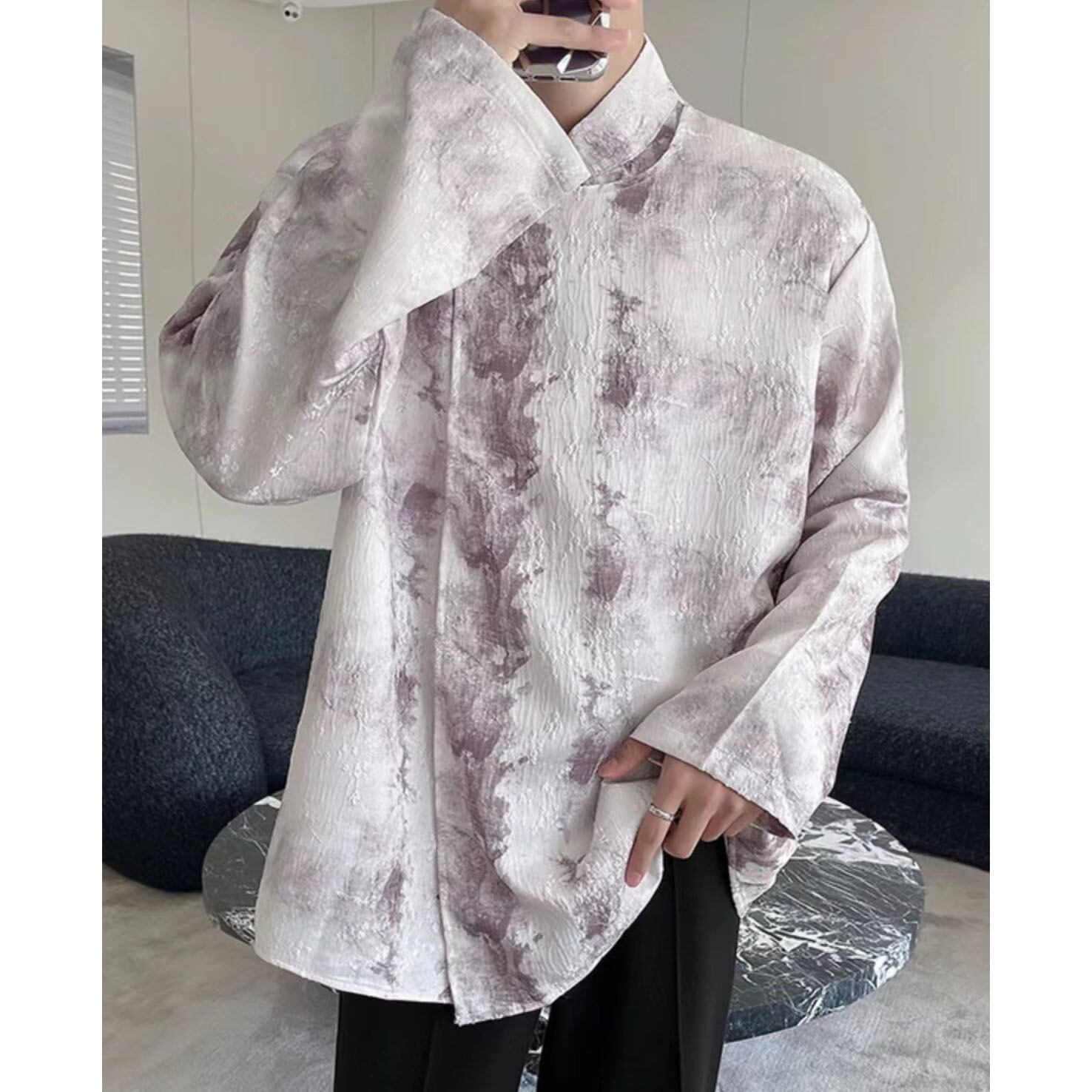 【之】★チャイナ風シャツ★ホワイト メンズ 綴り合せ 水墨 | 之