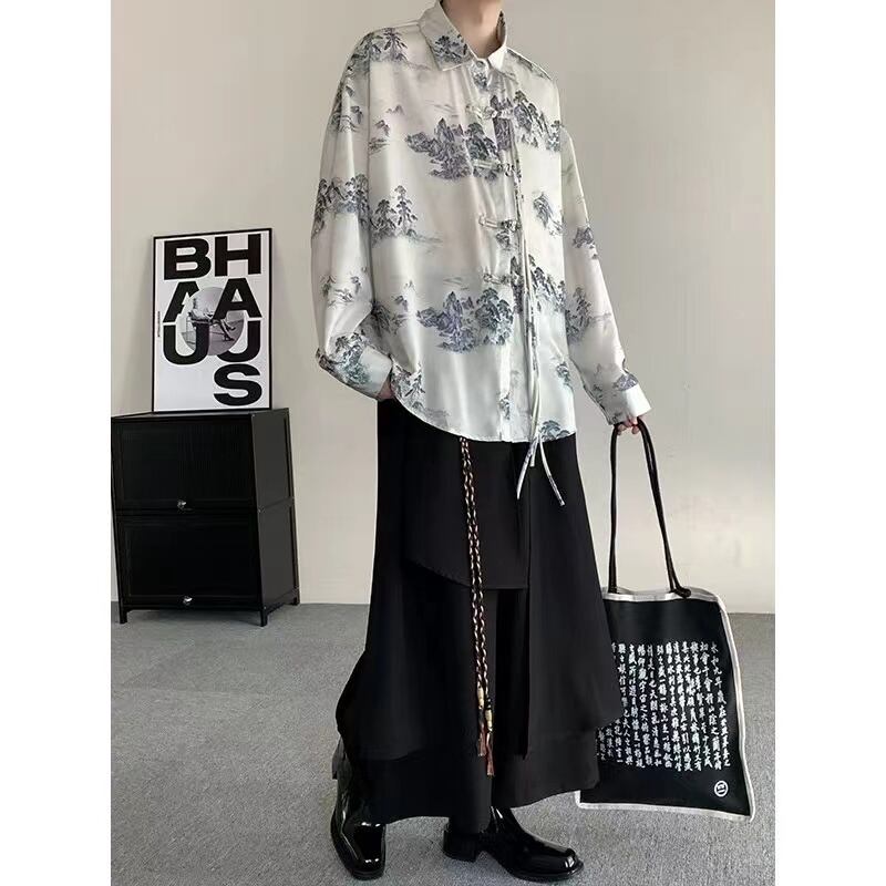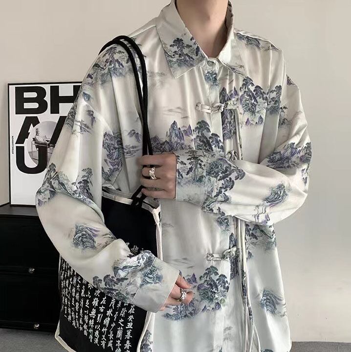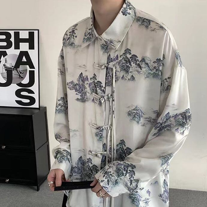 【之】★シャツ★ホワイト カジュアル 山柄 結び目ボタン | 之