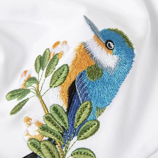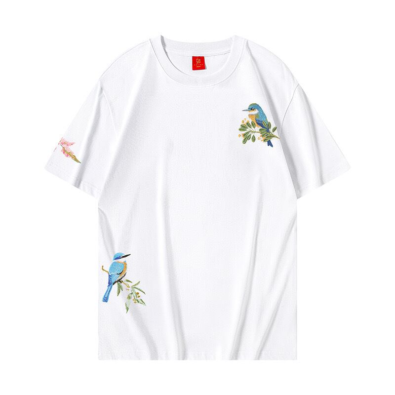 【之】★Tシャツ★ブラック ホワイト カジュアル 刺繍 鳥