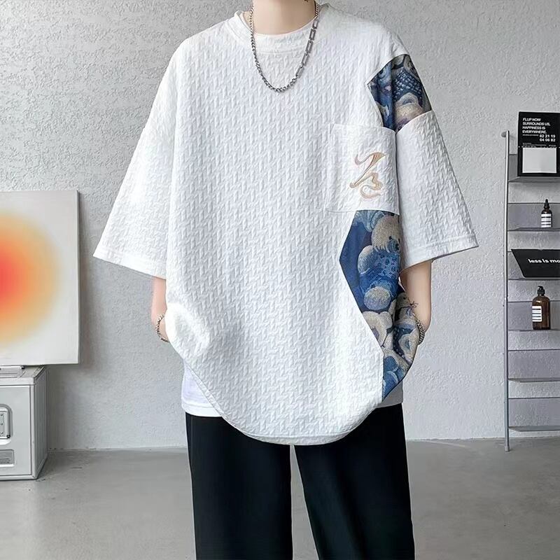 【之】★Tシャツ★3色入り カジュアル vintage 熊柄 綴り合せ | 之