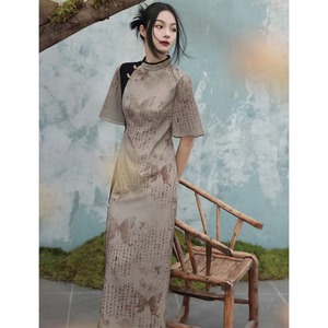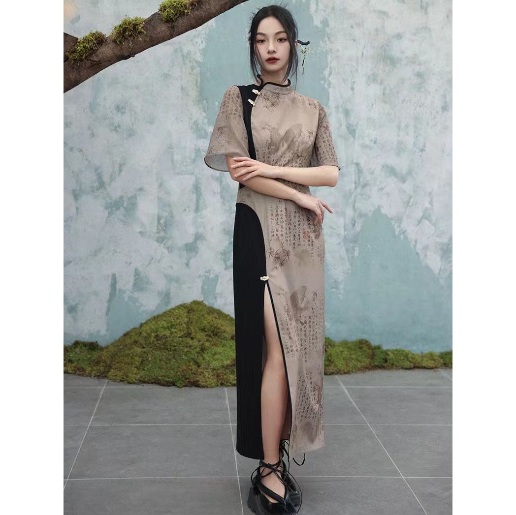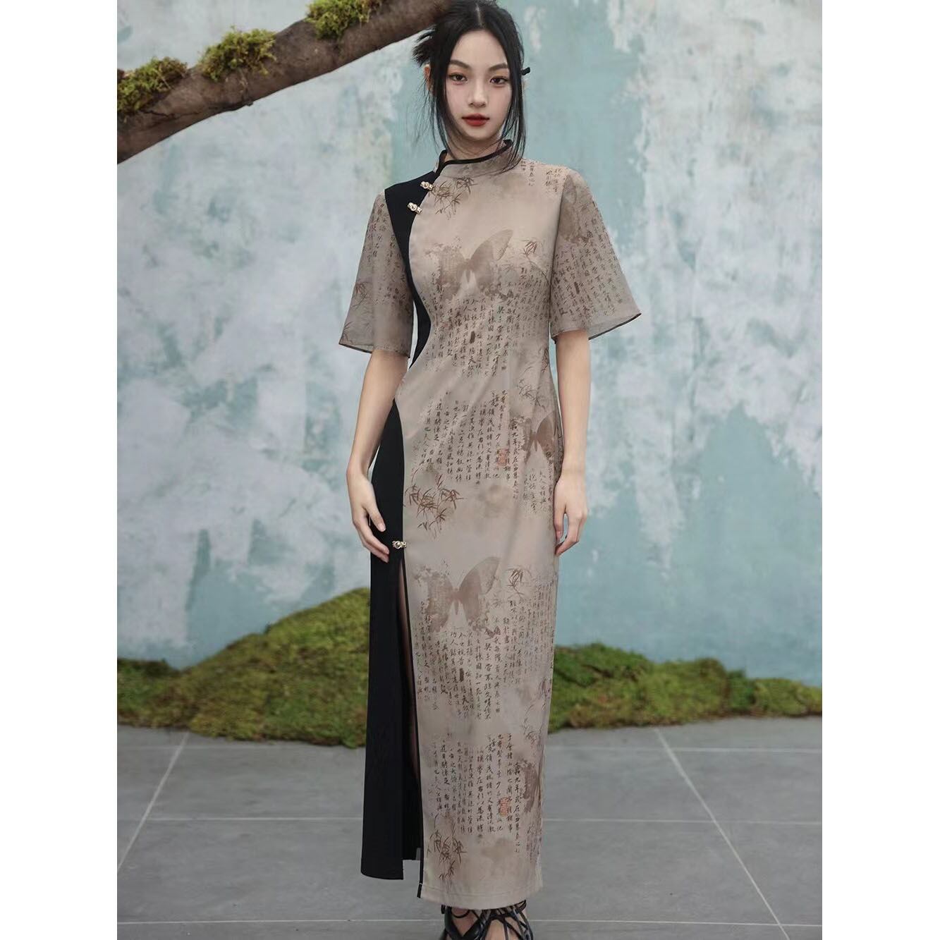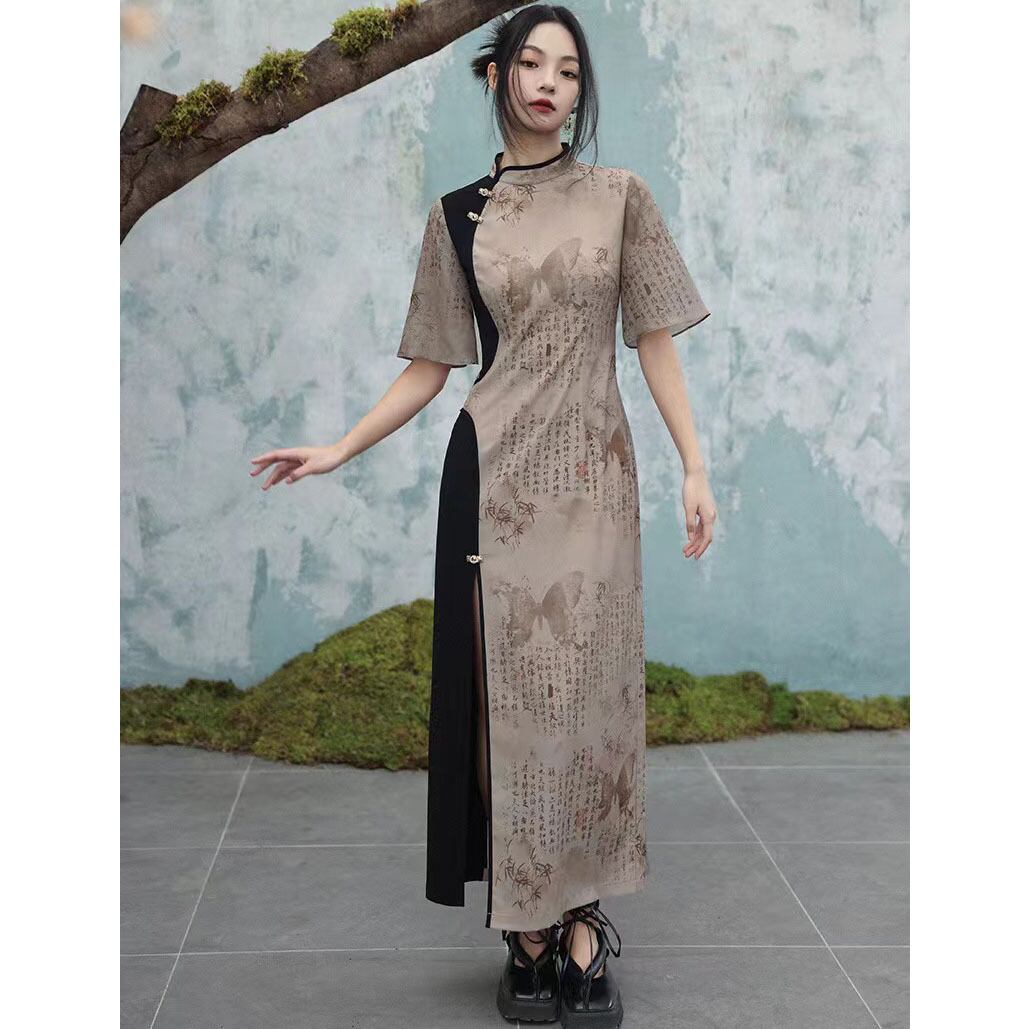 ◇盗花人落春江◇【之x大青龍肆】★ワンピース★ラテ レディース服 二次会 女子会 成人式 綴り合せ 漢字 蝶々