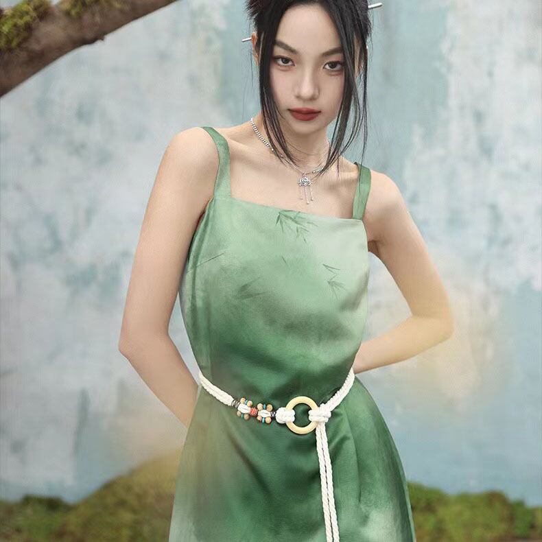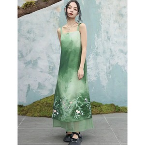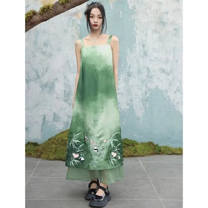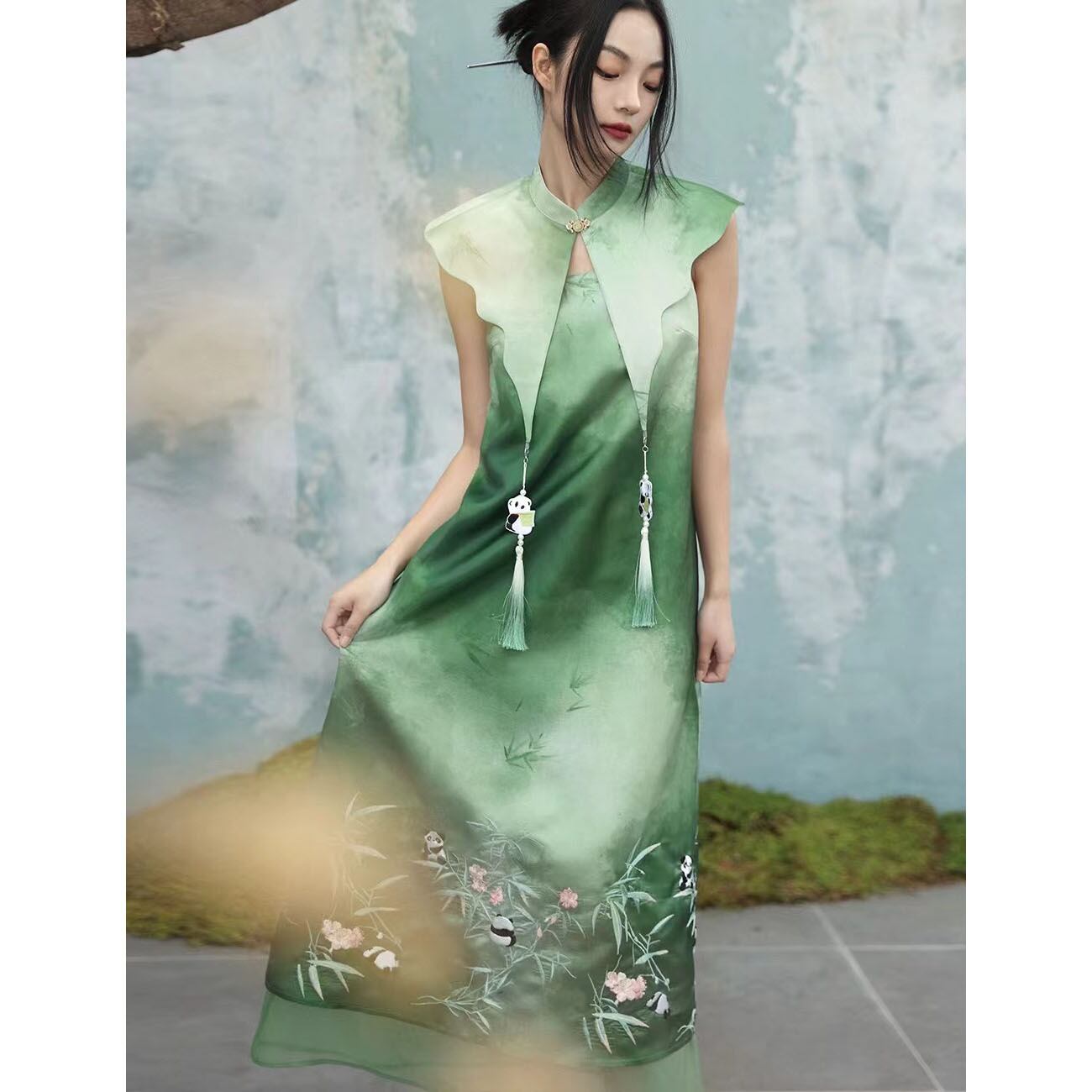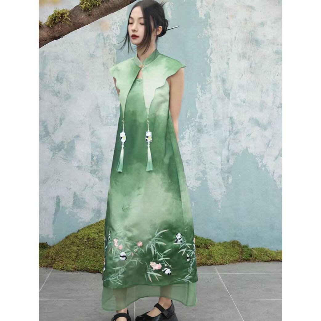 ◇盗花人落春江◇【之x大青龍肆】★ワンピース★グリーン レディース服 二次会 女子会 成人式 刺繍 パンダ