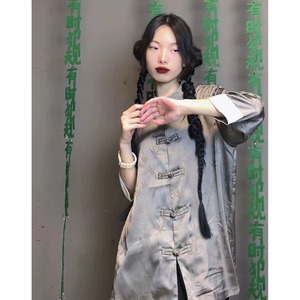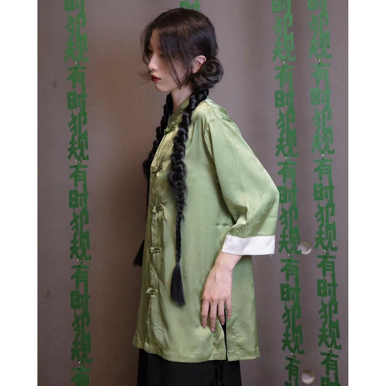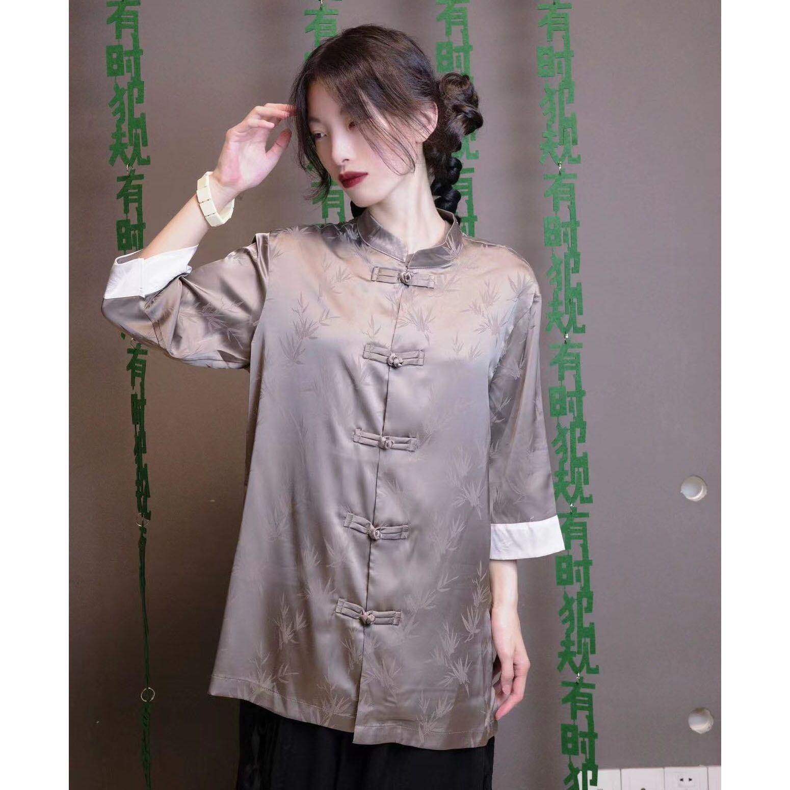 【之】★シャツ★グリーン グレー 合わせやすい カジュアル 竹