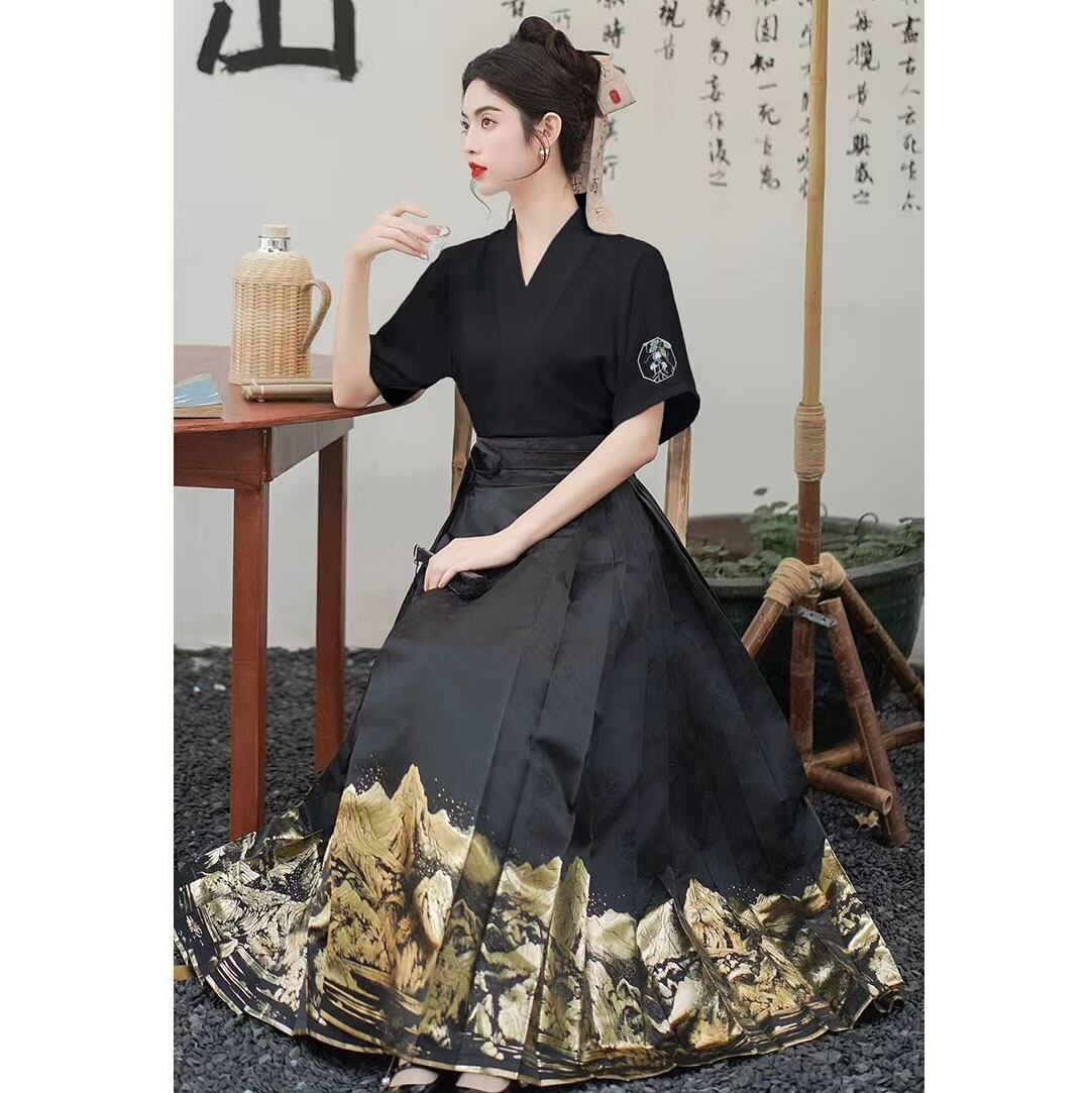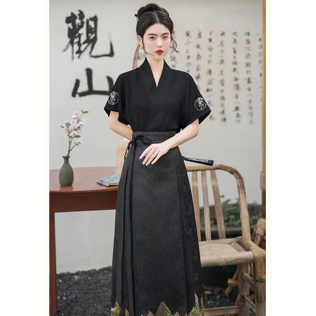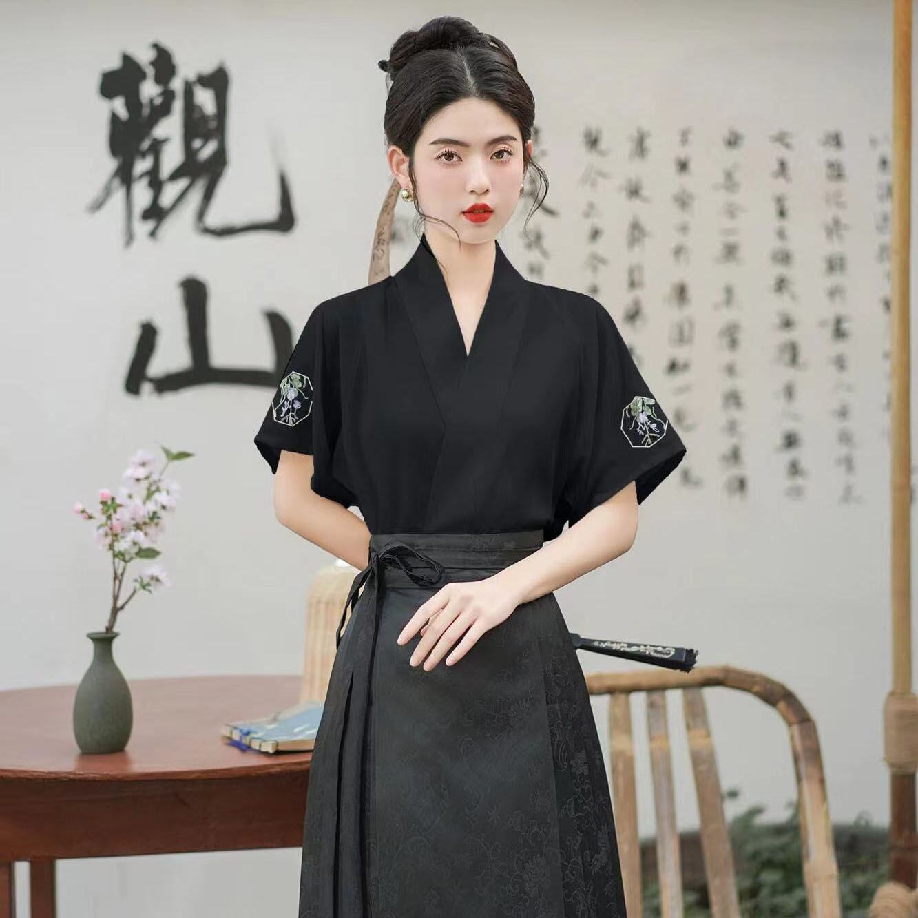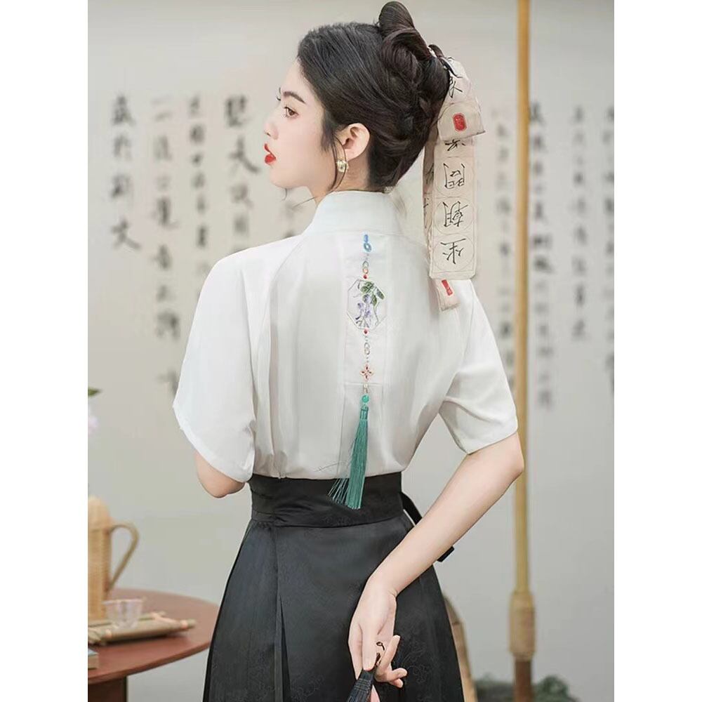 【之】★シャツ★ブラック ホワイト 合わせやすい カジュアル 刺繍