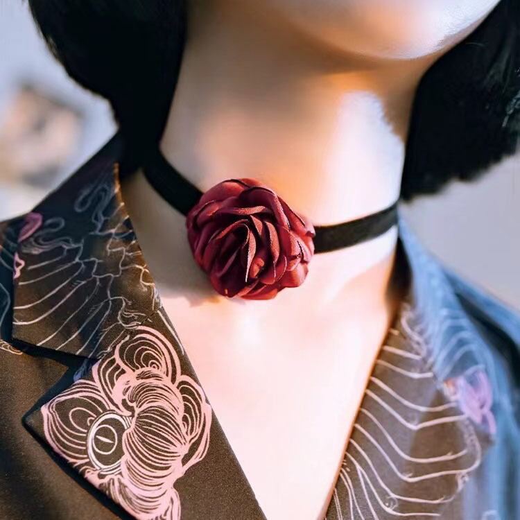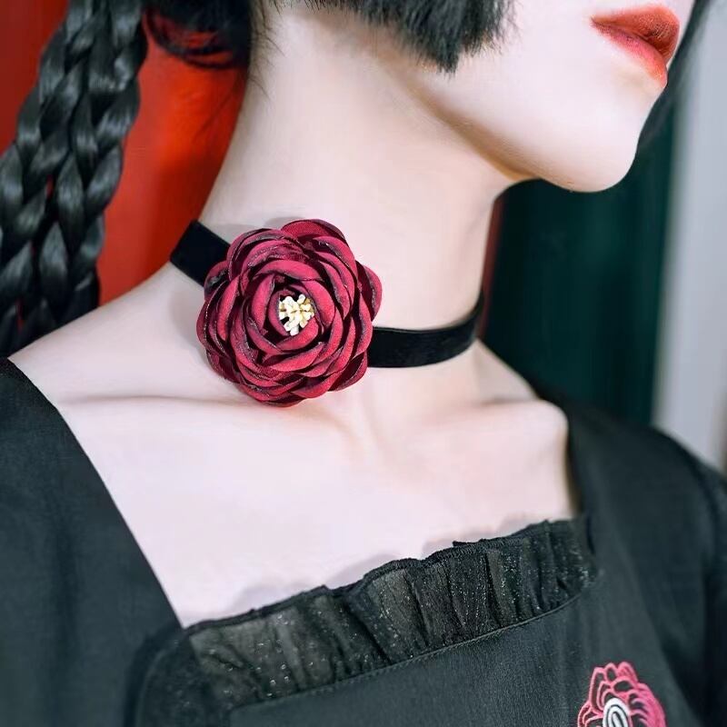 【之x古怪舎】★チョーカー・シャクヤク★レッド パンク風 プリント 暗黒風 花柄