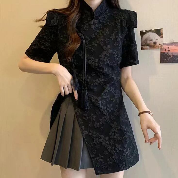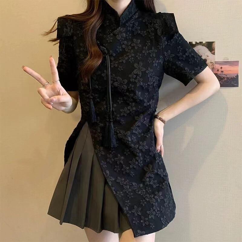【之】★シャツ★ブラック 合わせやすい カジュアル 結び目ボタン | 之
