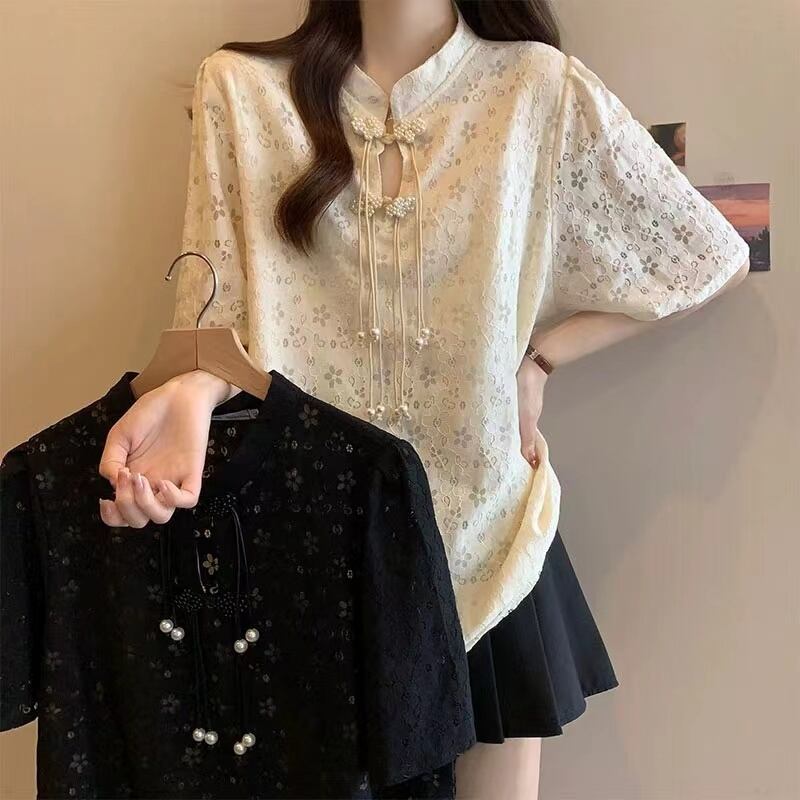 【之】★シャツ★ブラック ベージュ 合わせやすい カジュアル 結び目ボタン | 之