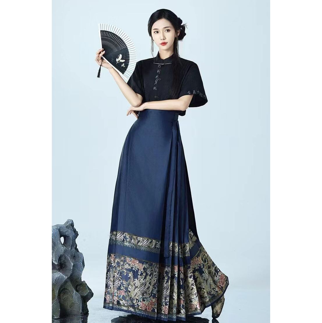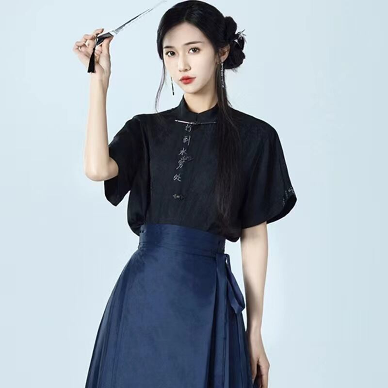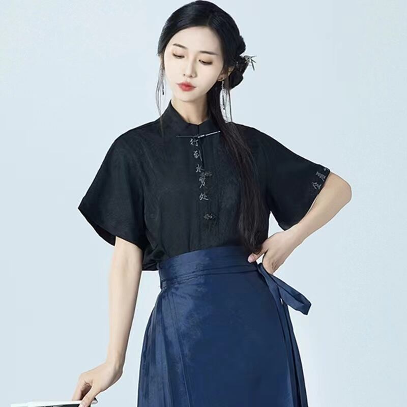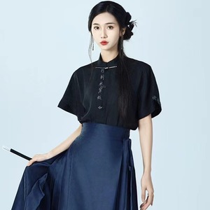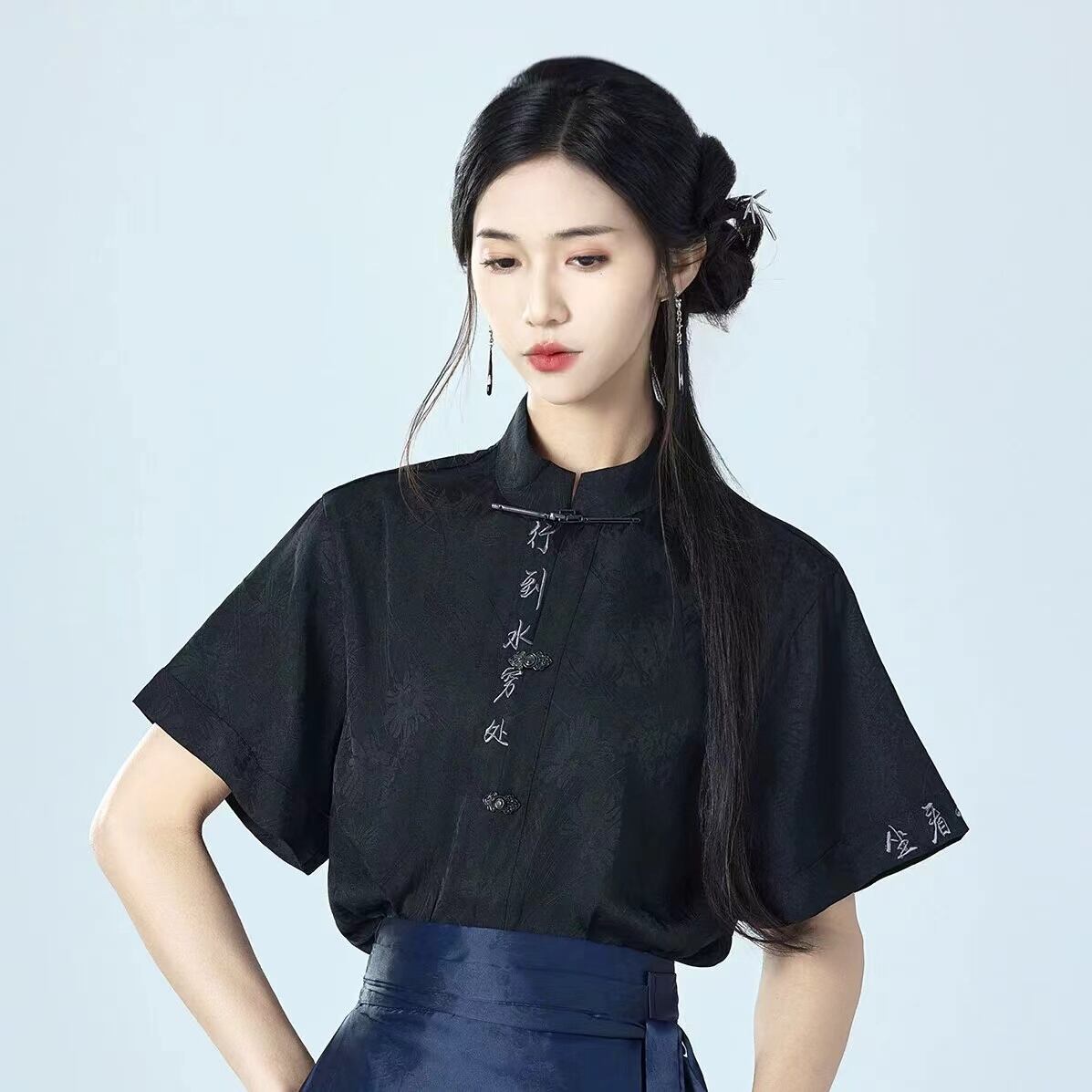 【之】★シャツ★ブラック 合わせやすい カジュアル 漢字 刺繍