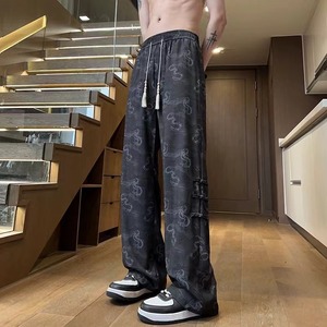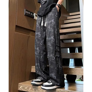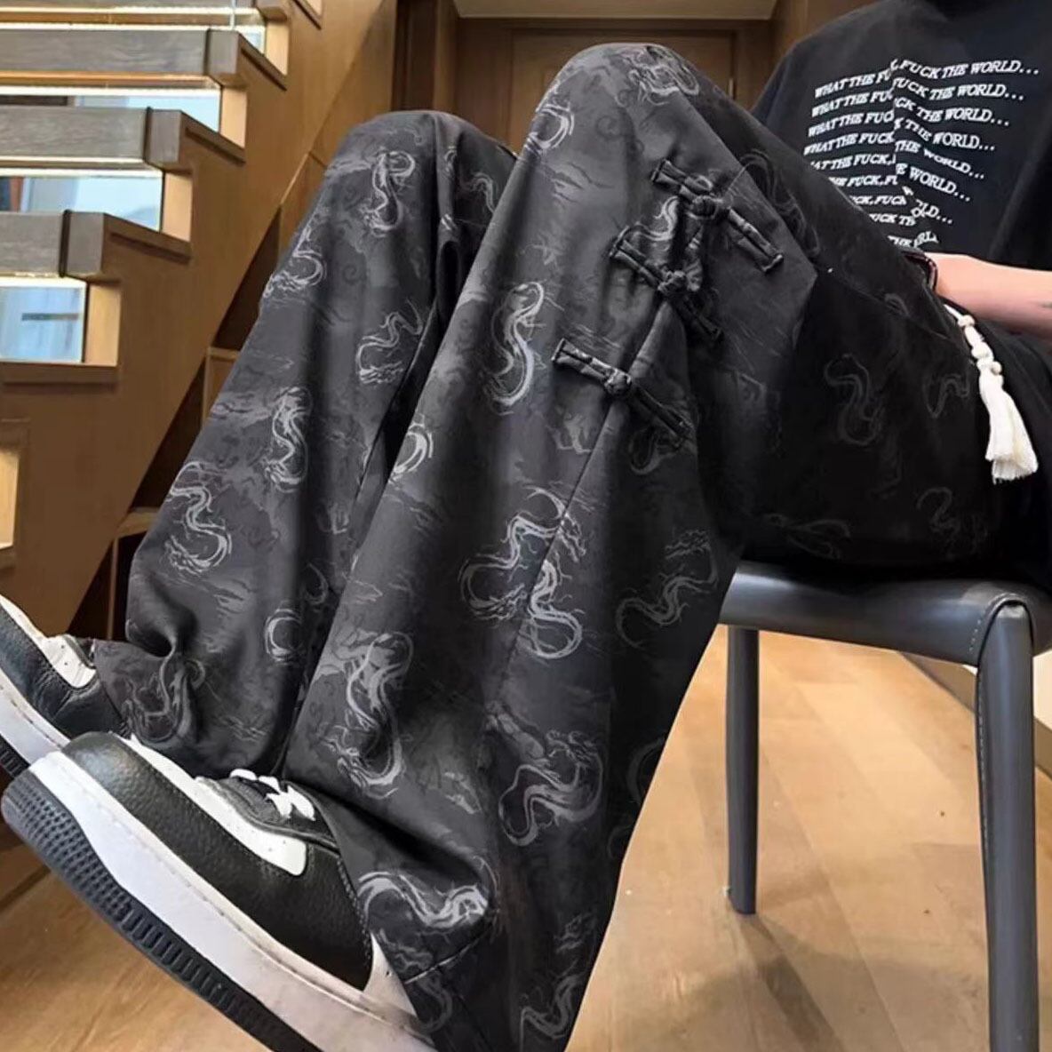 【之】★ズボン★ブラック ホワイト ファスナー デザイン 結び目ボタン 中国ファッション 龍柄
